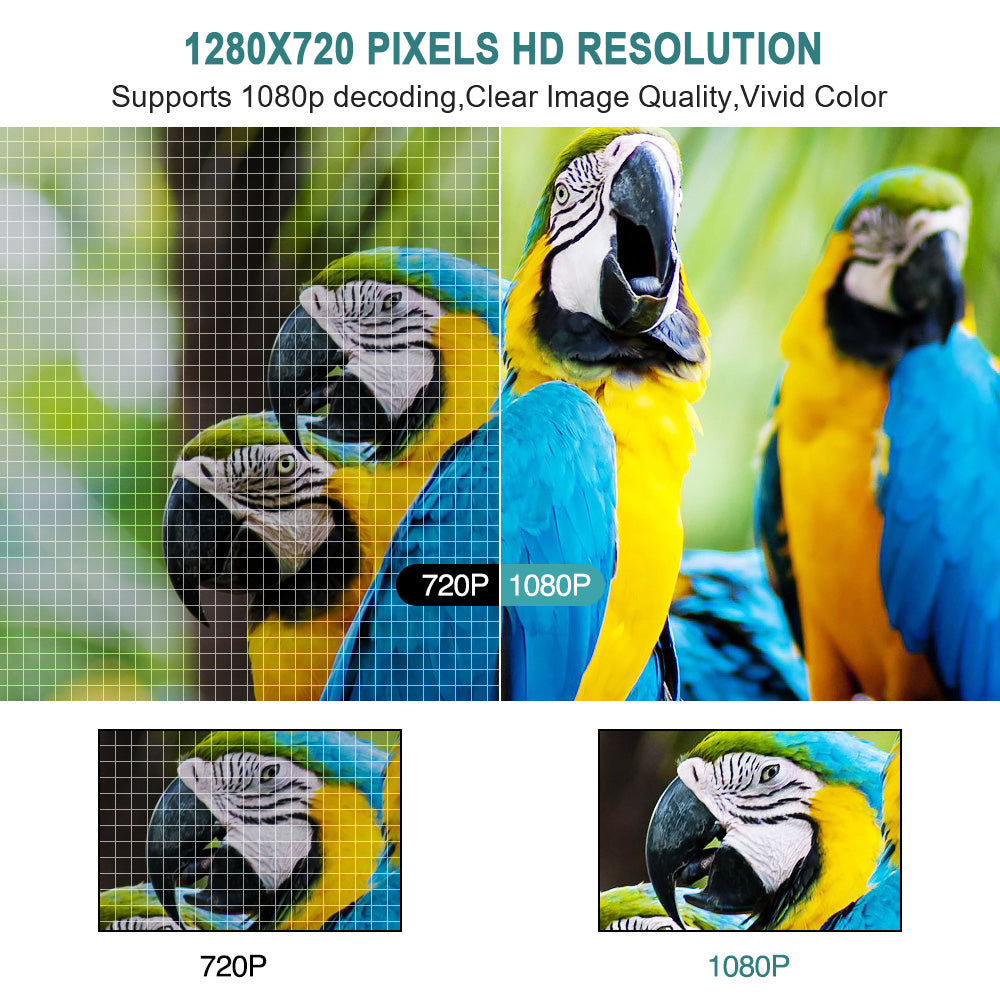 - Advanced LED technology Enhanced LED bulbs can produce better brightness, making our projectors 60% brighter than ordinary projectors. Innovative cooling technology and speaker dual fan design, the cooling system is more efficient, can protect the bulb and extend the service life, more than 30,000 hours