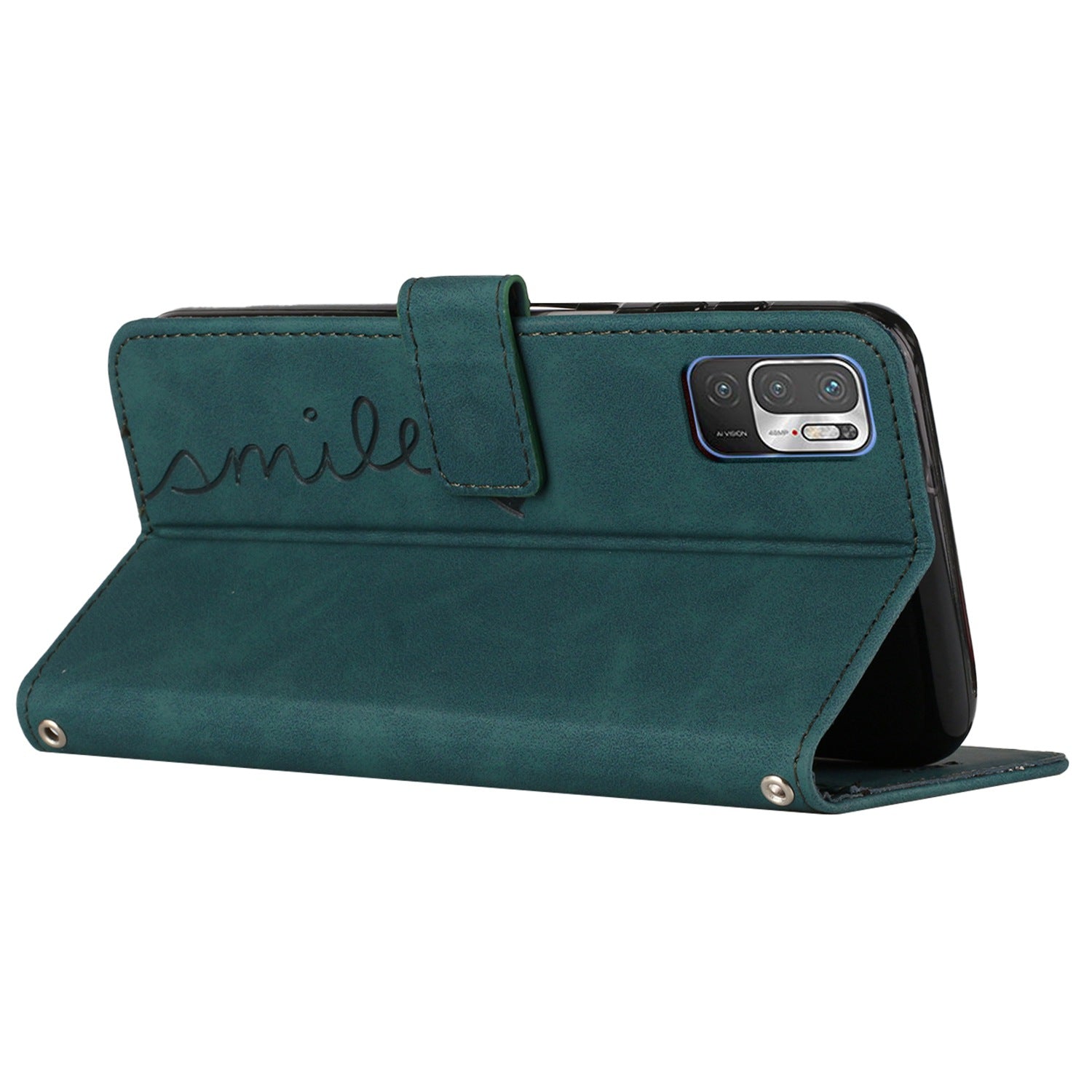 Heart Shape Imprinted Phone Case for Xiaomi Redmi Note 10 5G/Note 10T 5G/Poco M3 Pro 5G/4G Anti-scratch PU Leather Skin-touch Feeling Wallet Stand Shell with Strap