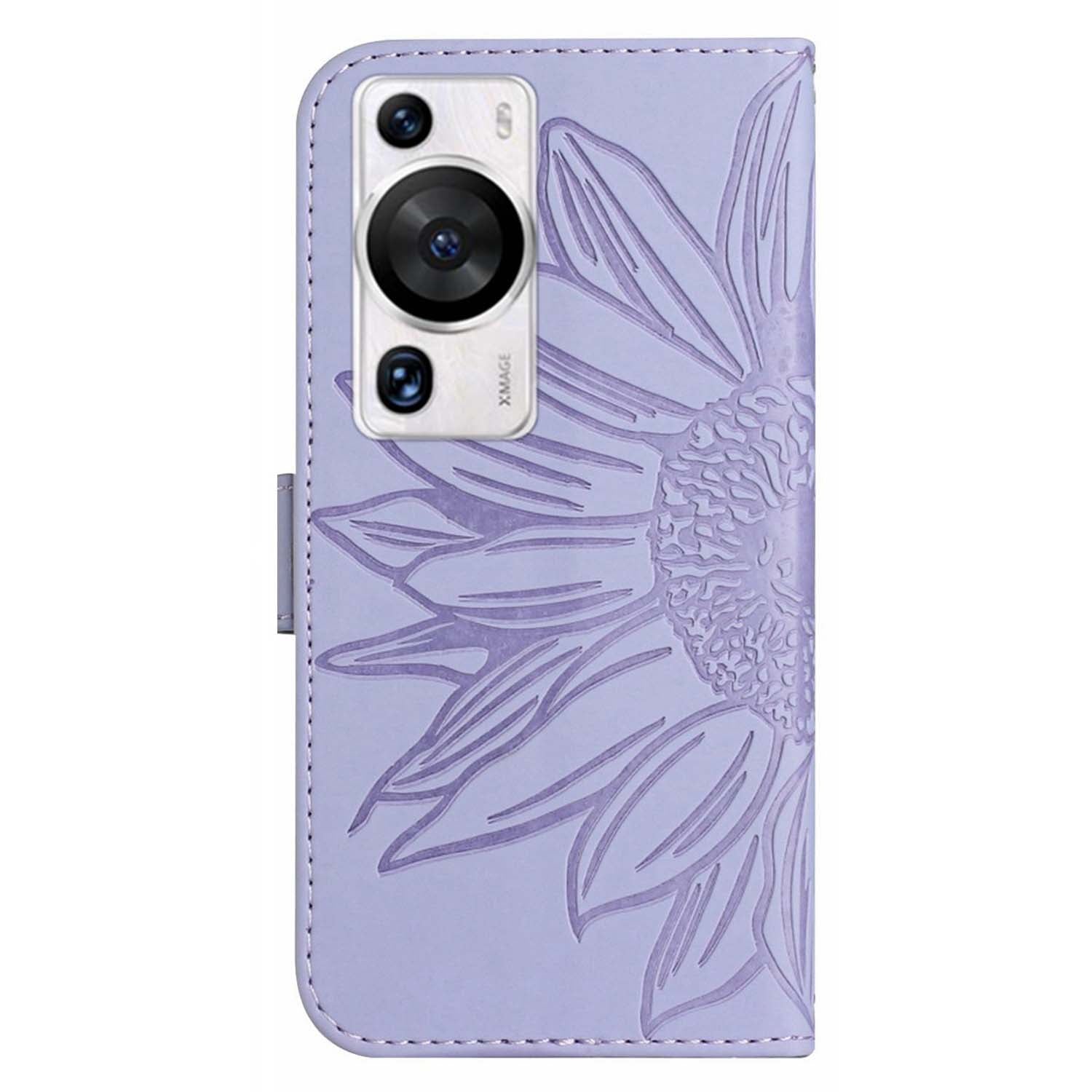 HT04 For Huawei P60 / P60 Pro Sunflower Imprinting Phone Case Leather Stand Wallet Cover with Shoulder Strap