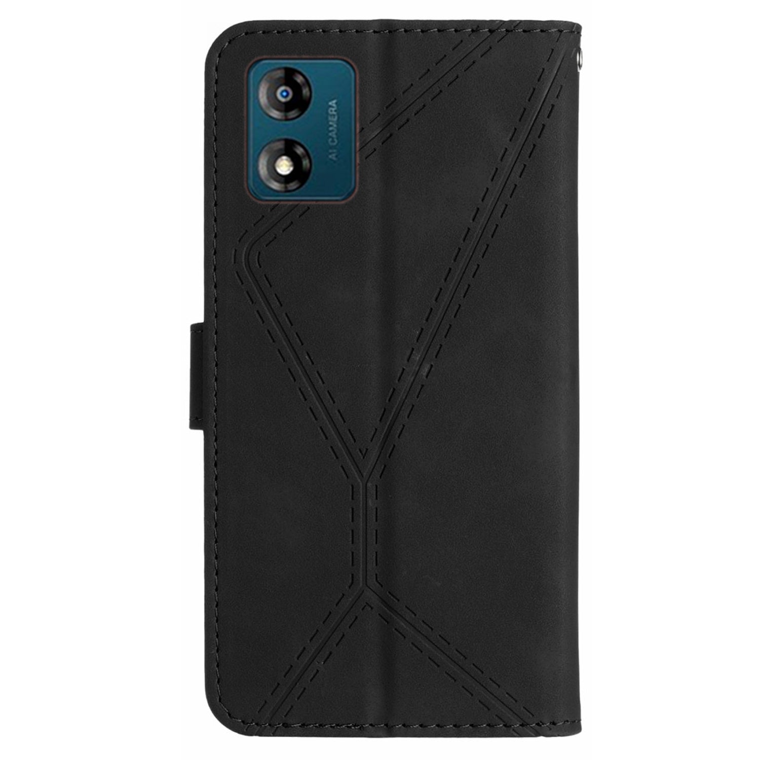 HT05 For Motorola Moto E13 4G PU Leather Flip Cover Imprinted Line Skin-touch Stand Wallet Phone Case