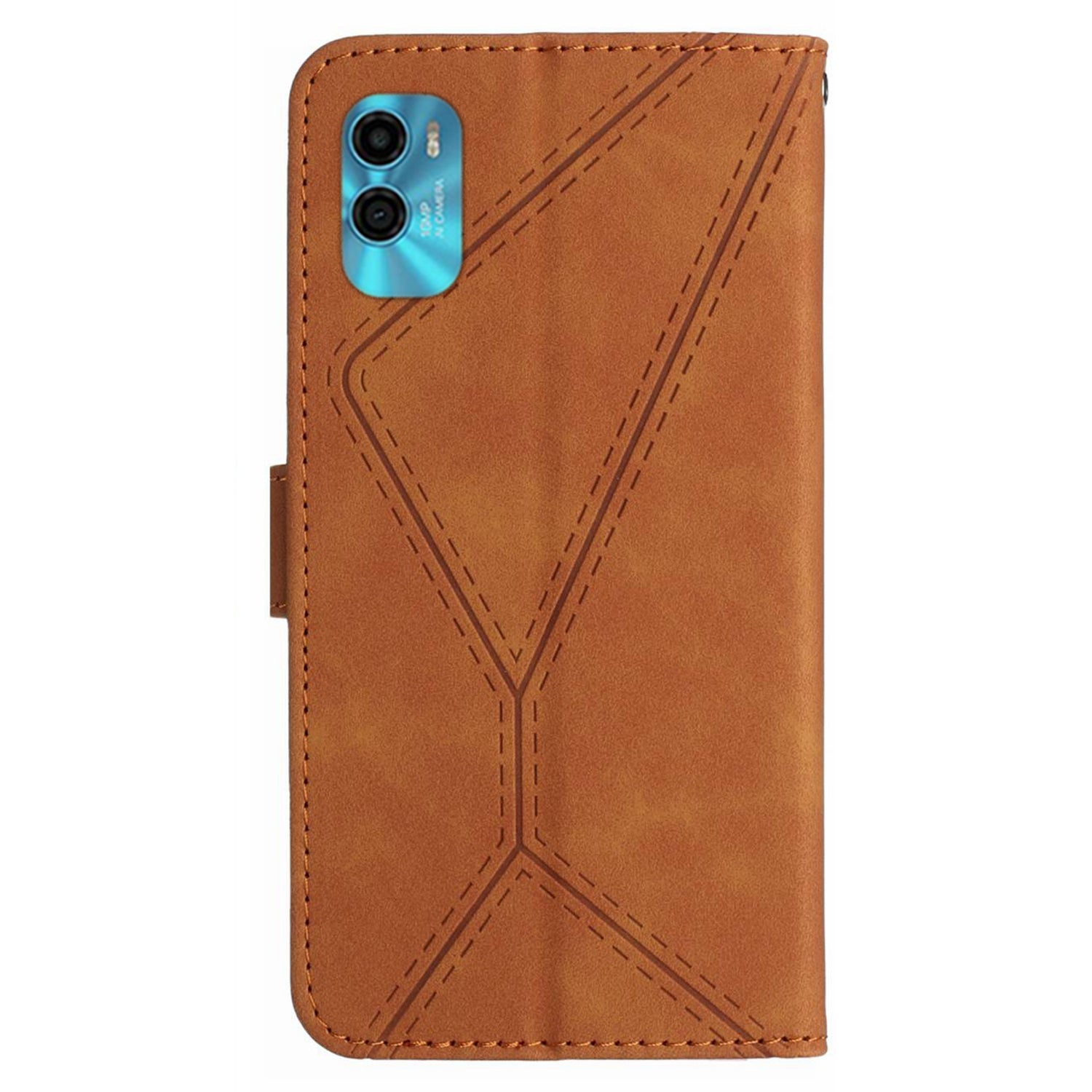 HT05 For Motorola Moto G22 / E22s 4G Wallet Phone Case PU Leather Skin-touch Imprinted Line Stand Cover
