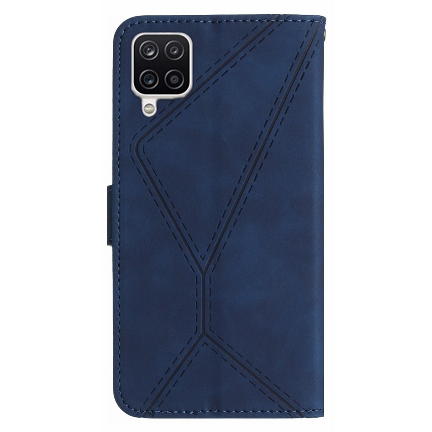 HT05 For Samsung Galaxy A12 / M12 / F12 Imprinted Line Wallet Stand Skin-touch PU Leather Phone Case
