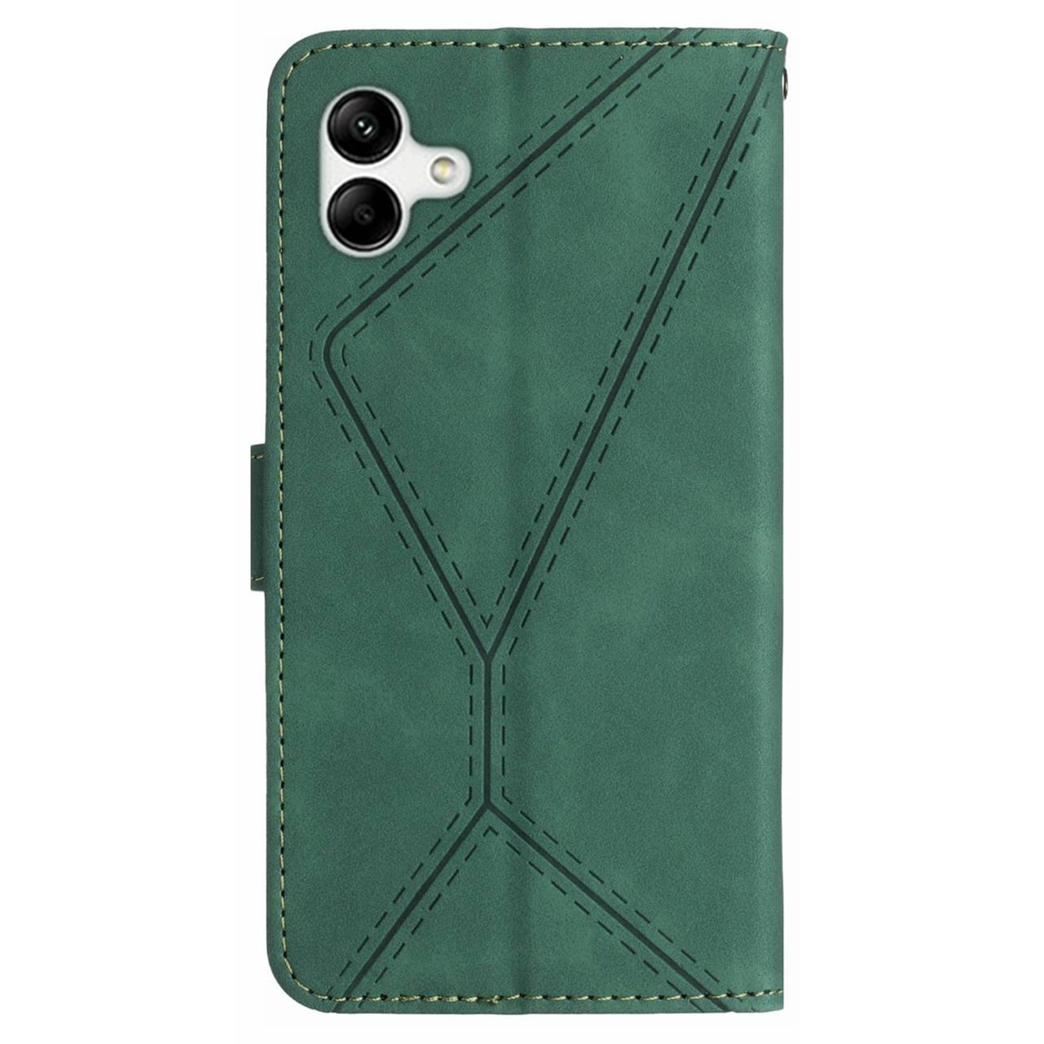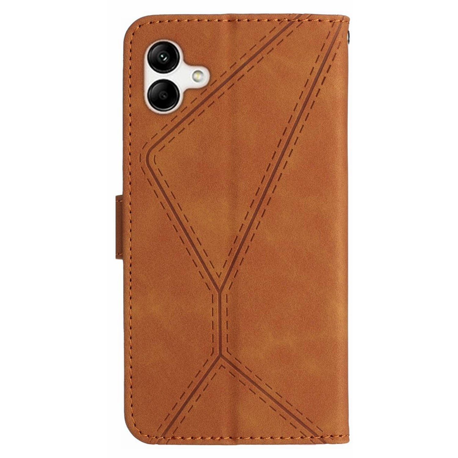 HT05 Imprinted Line Phone Case for Samsung Galaxy A04e 4G / M04 4G / F04 4G Wallet Stand Skin-touch PU Leather Cover
