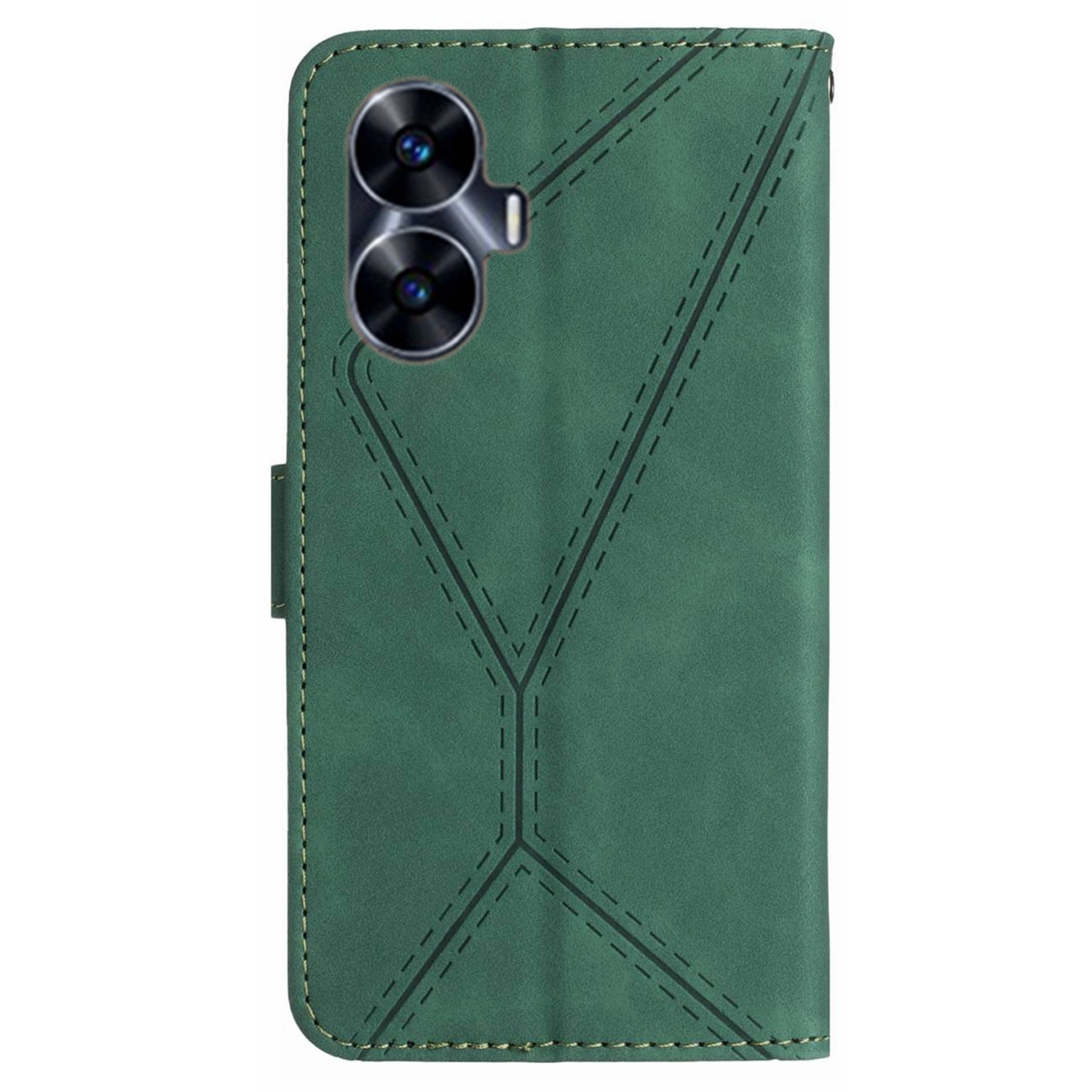 HT05 Phone Case for Realme C55 Imprinted Line Wallet Stand Skin-touch PU Leather Cover