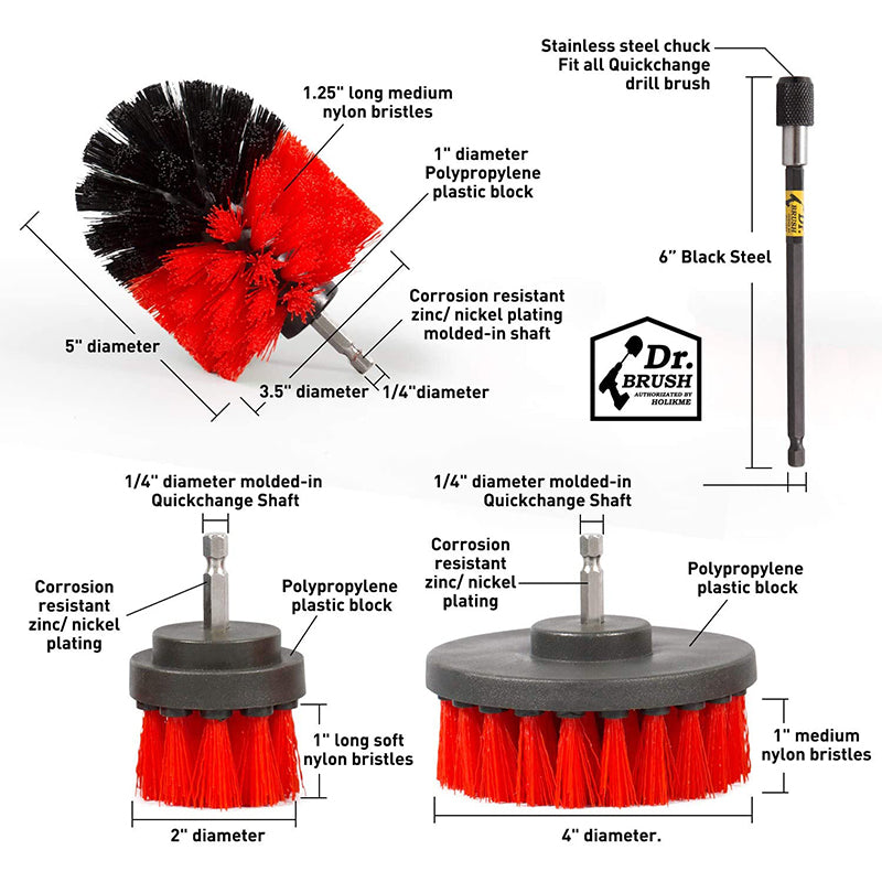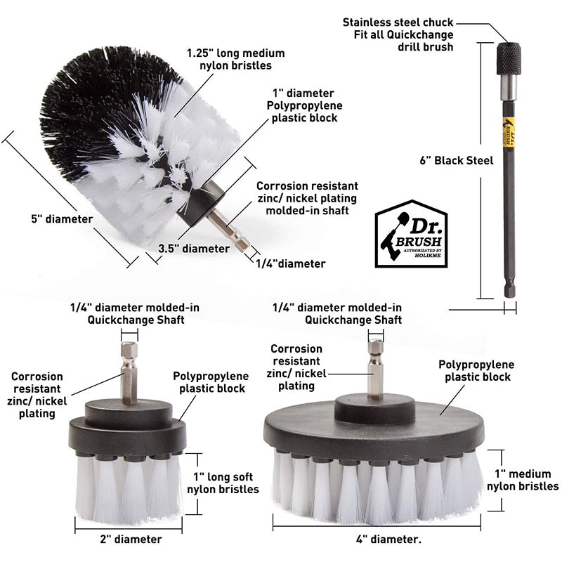 HX666 4pcs/set Drill Power Scrub Clean Brush Kit Electric Cleaning Brushes Set for Car Grout Tiles Bathroom