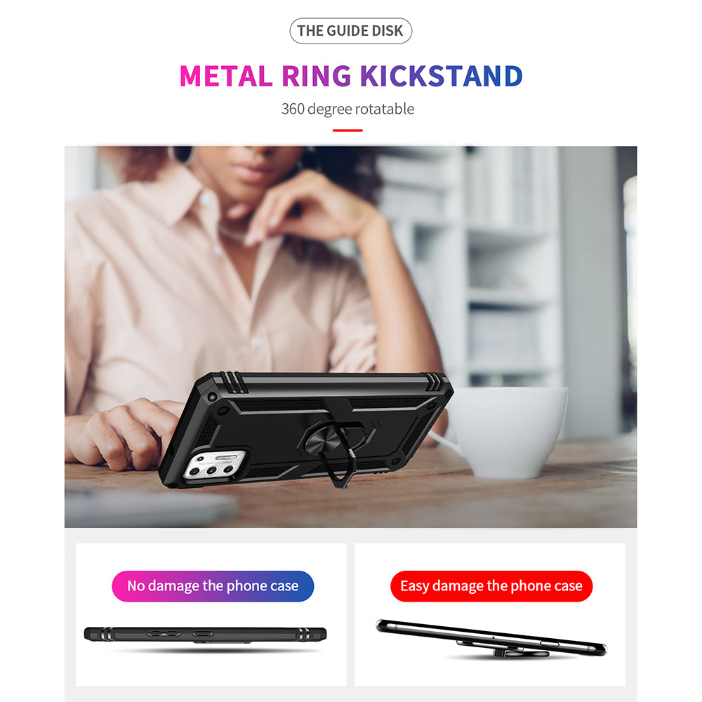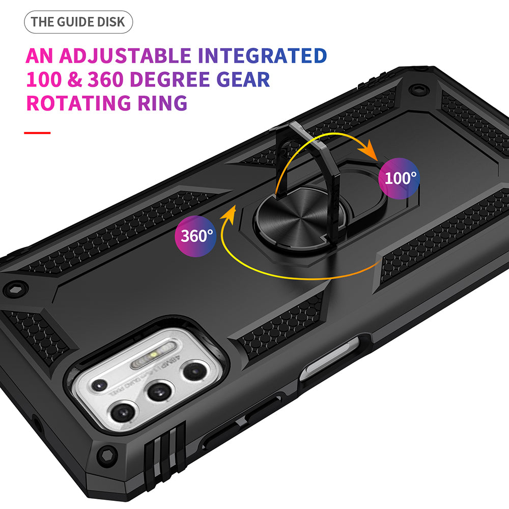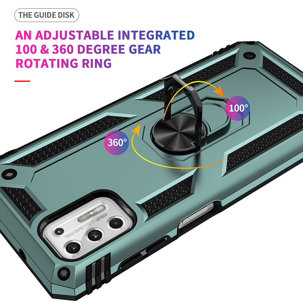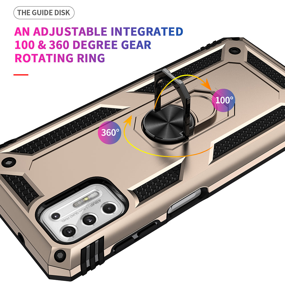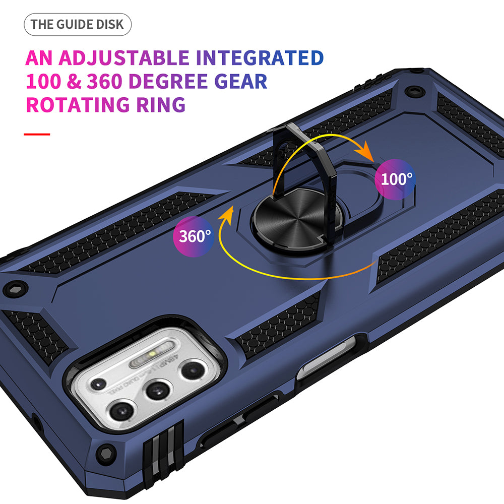 Hybrid PC + TPU + Metal Anti-Fall Phone Case Shell with Finger Ring Kickstand for Motorola Moto G Stylus 4G (2021)
