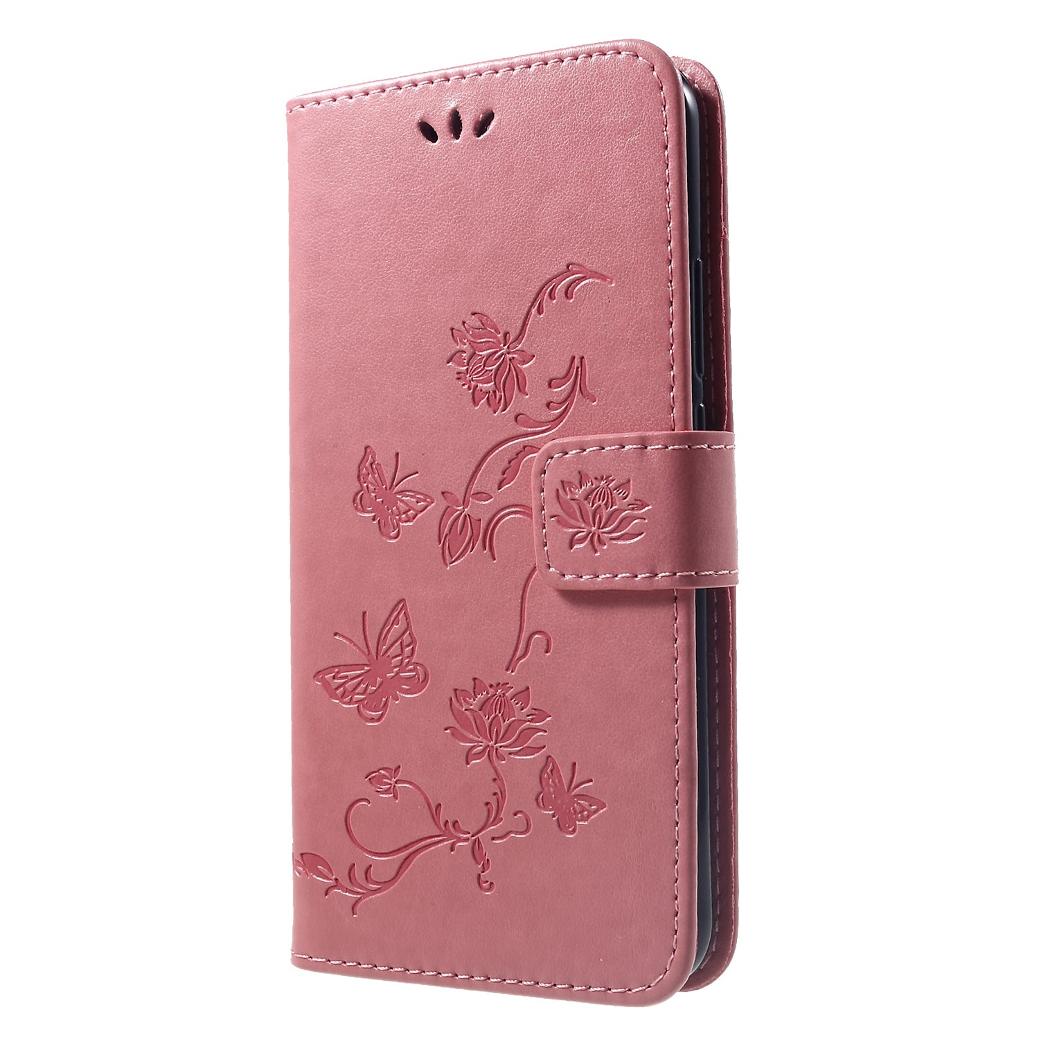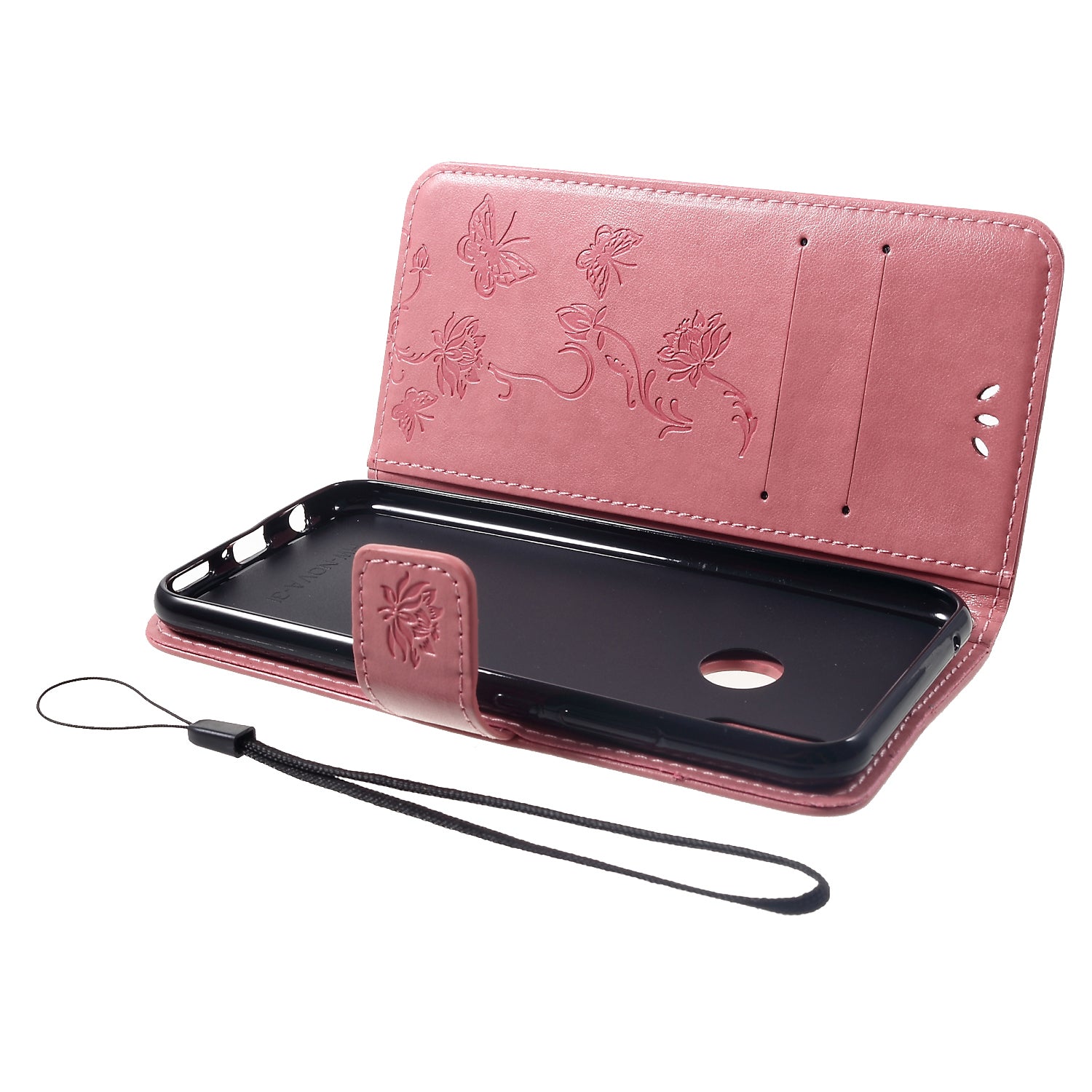 Imprint Butterfly Flower Leather Phone Case for Huawei nova 3i / P Smart Plus Wallet Stand Case - Pink