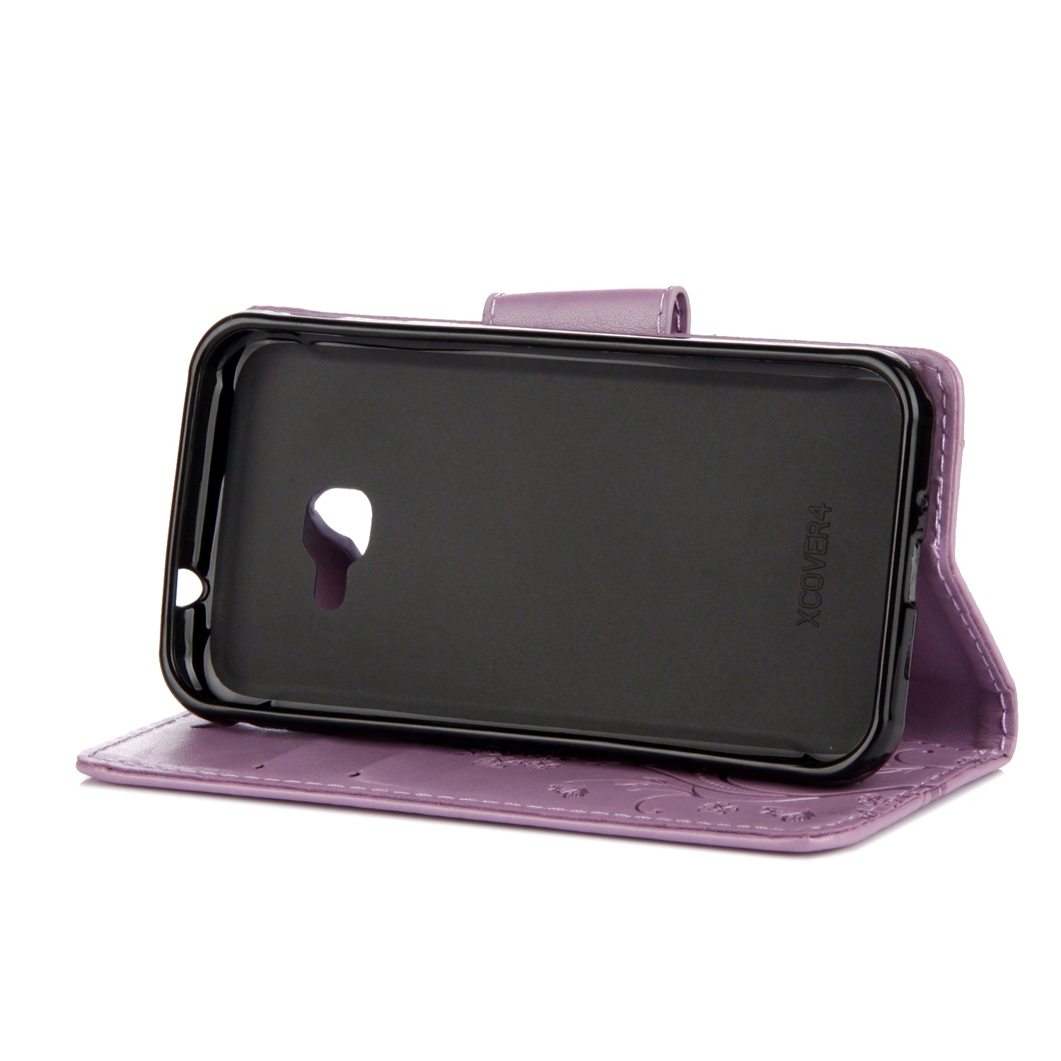 Imprint Butterfly Flower PU Leather Wallet Case for Samsung Galaxy Xcover 4s - Light Purple