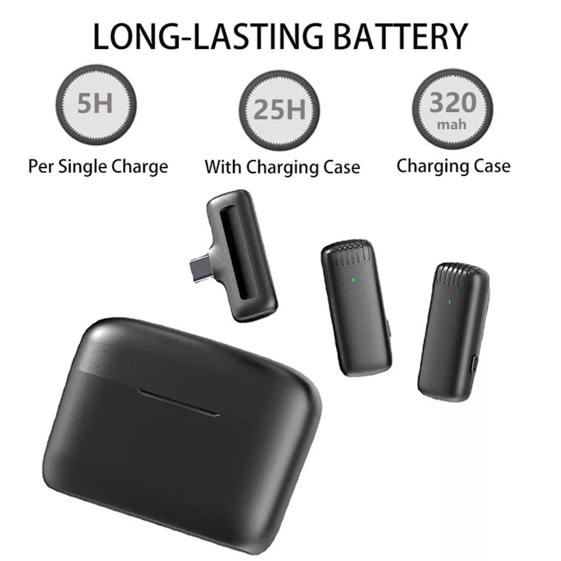 J13 2Pcs Wireless Lavalier Microphone with Receiver Omnidirectional Sound Pickup Mini Type-C Lavalier Mic