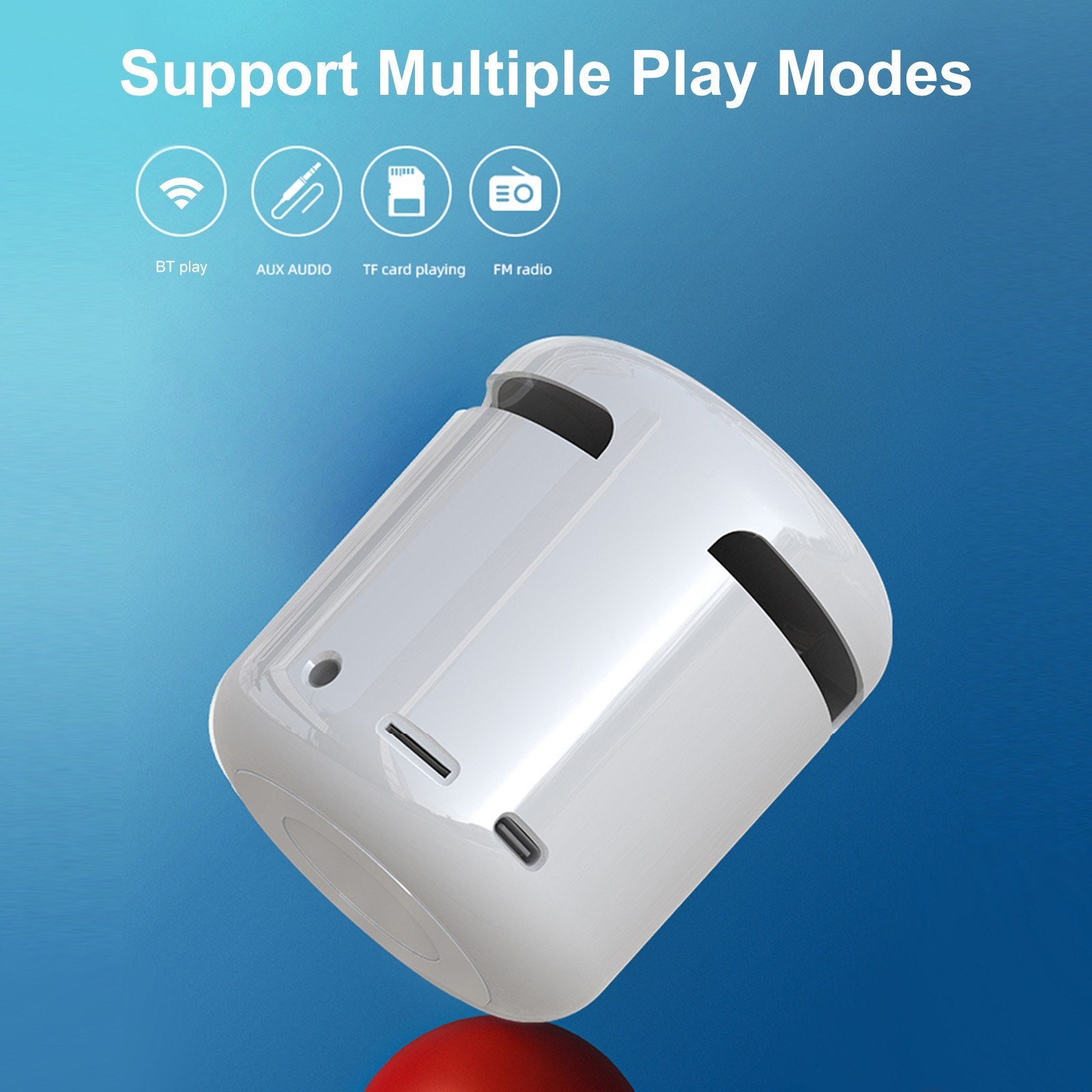 This is a palm-sized cylindrical BT speaker with a stereo design, clear and bright sound. It can be switched freely among multiple playback modes. It is suitable for sleeping, listening to music, going out on a date, relaxing in the office, etc.