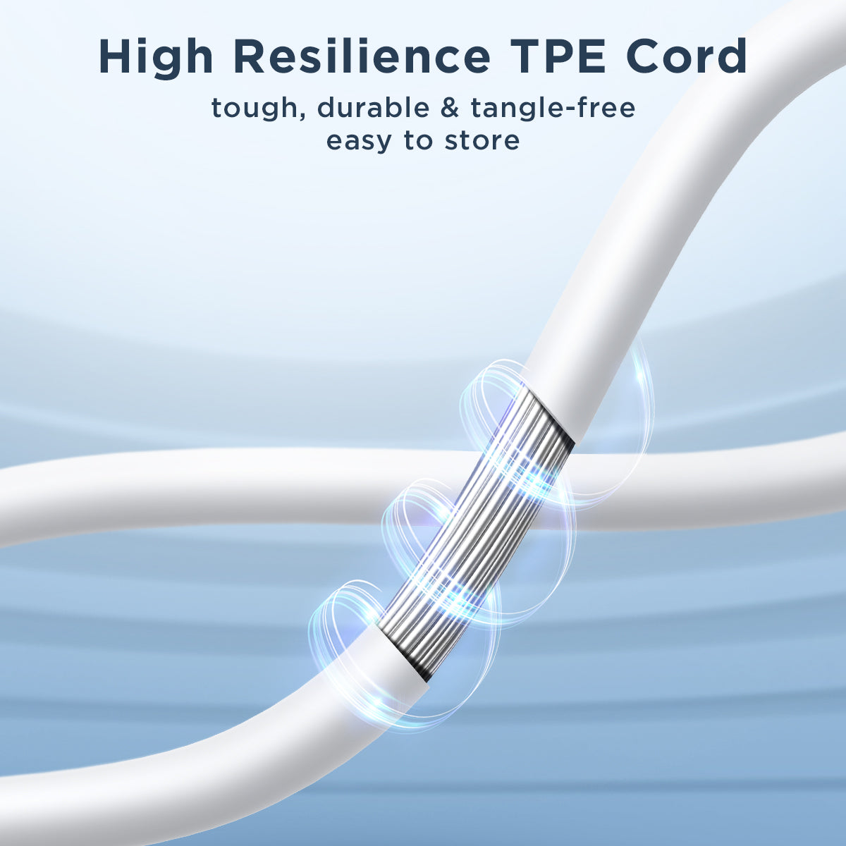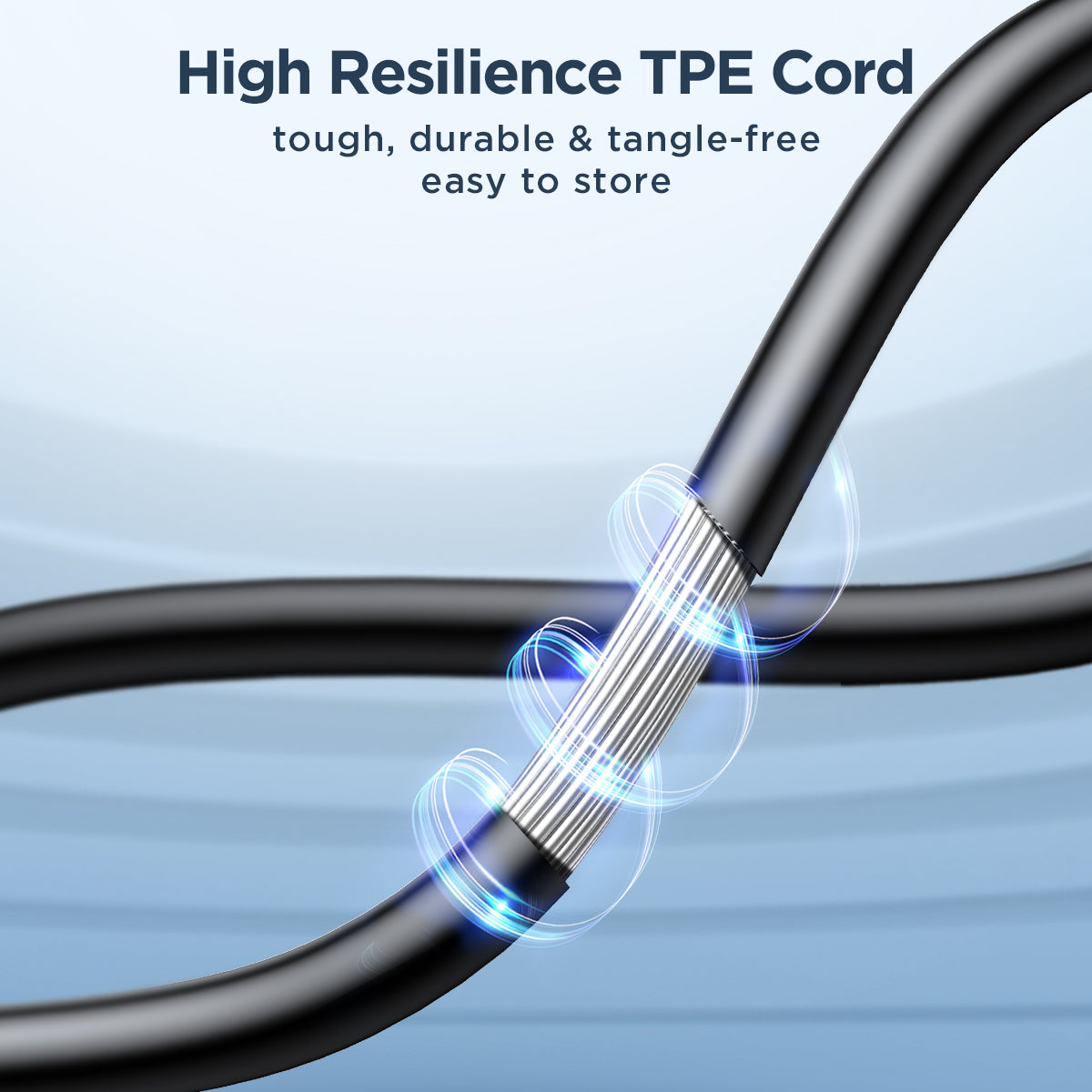 - High resilience TPE cord, tough, durable & tangle-free, easy to store