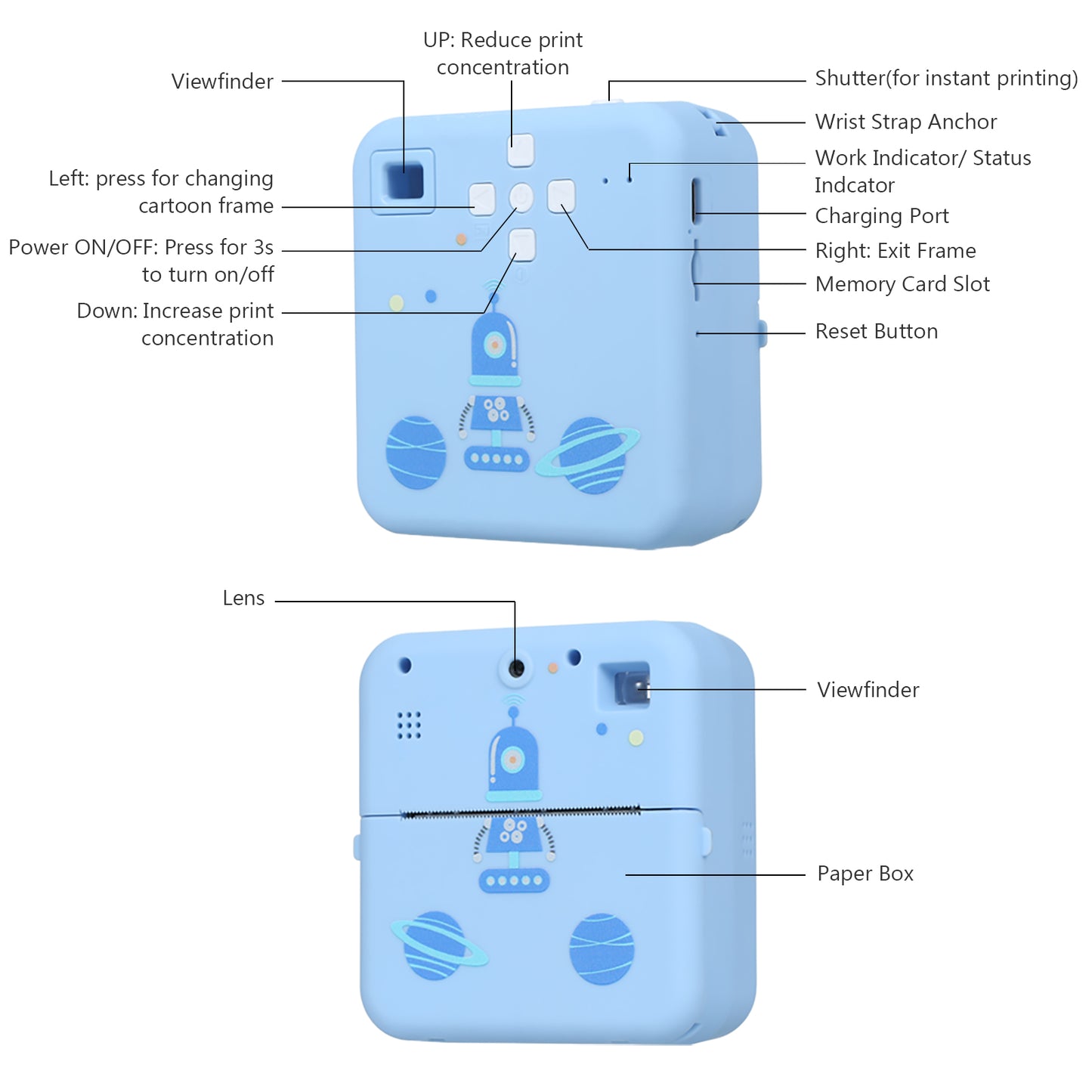 K12 Kids Digital Camera Thermal Printer Lightweight Portable Front / Rear HD Dual Lens Camera