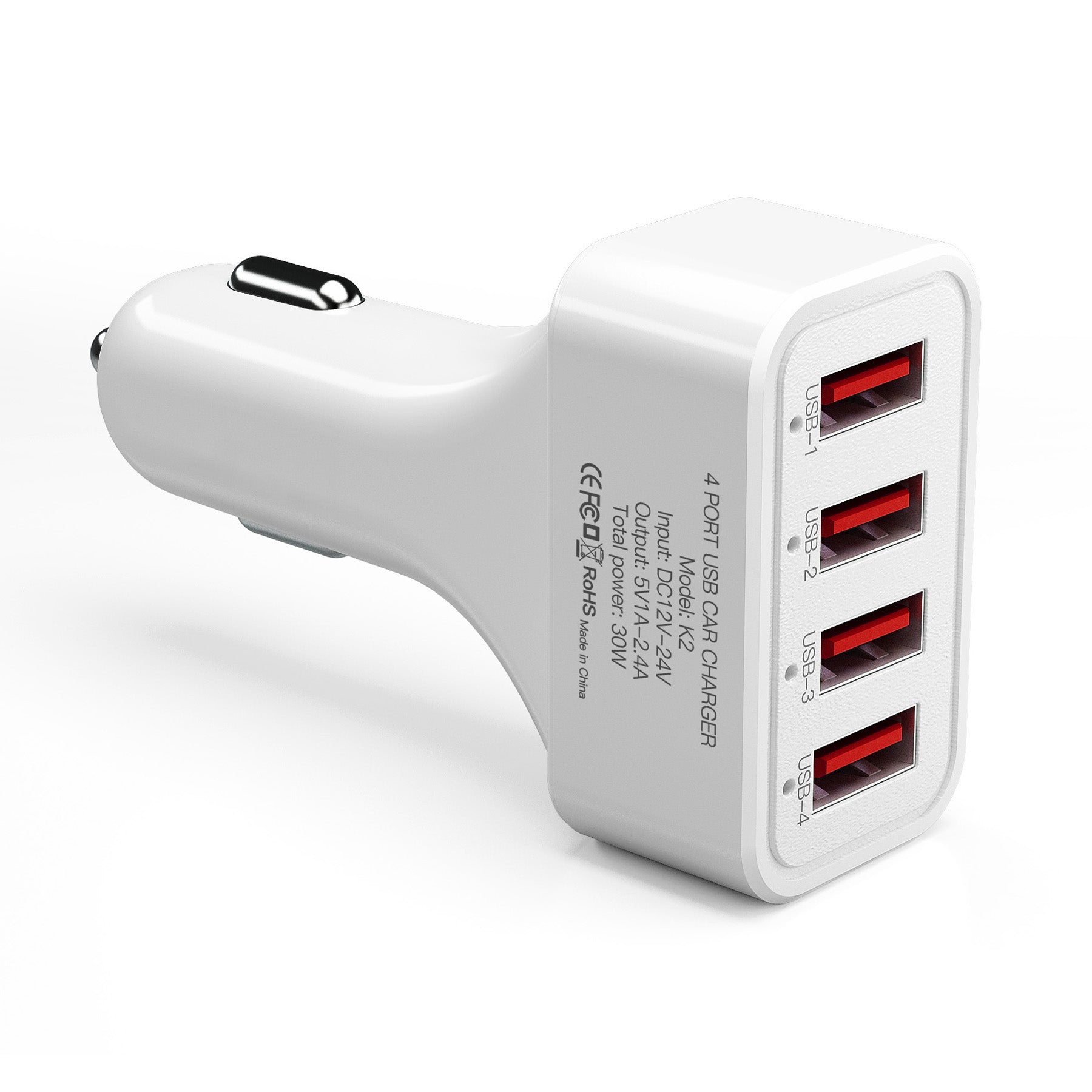 K2 4 USB Ports Car Charger PC+ABS Mobile Phone Tablet Charging Power Adapter (CE Certified)