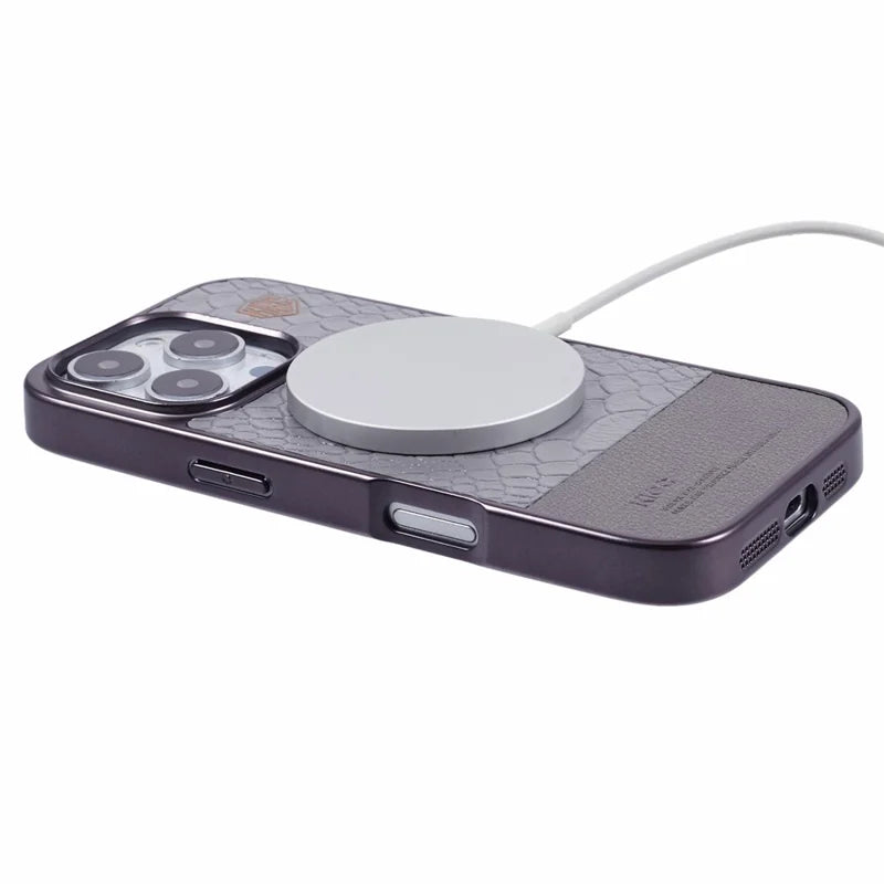 KIGC For iPhone 16 Pro Max Case Compatible with MagSafe Crocodile Texture PU+PC+TPU Electroplating Phone Cover