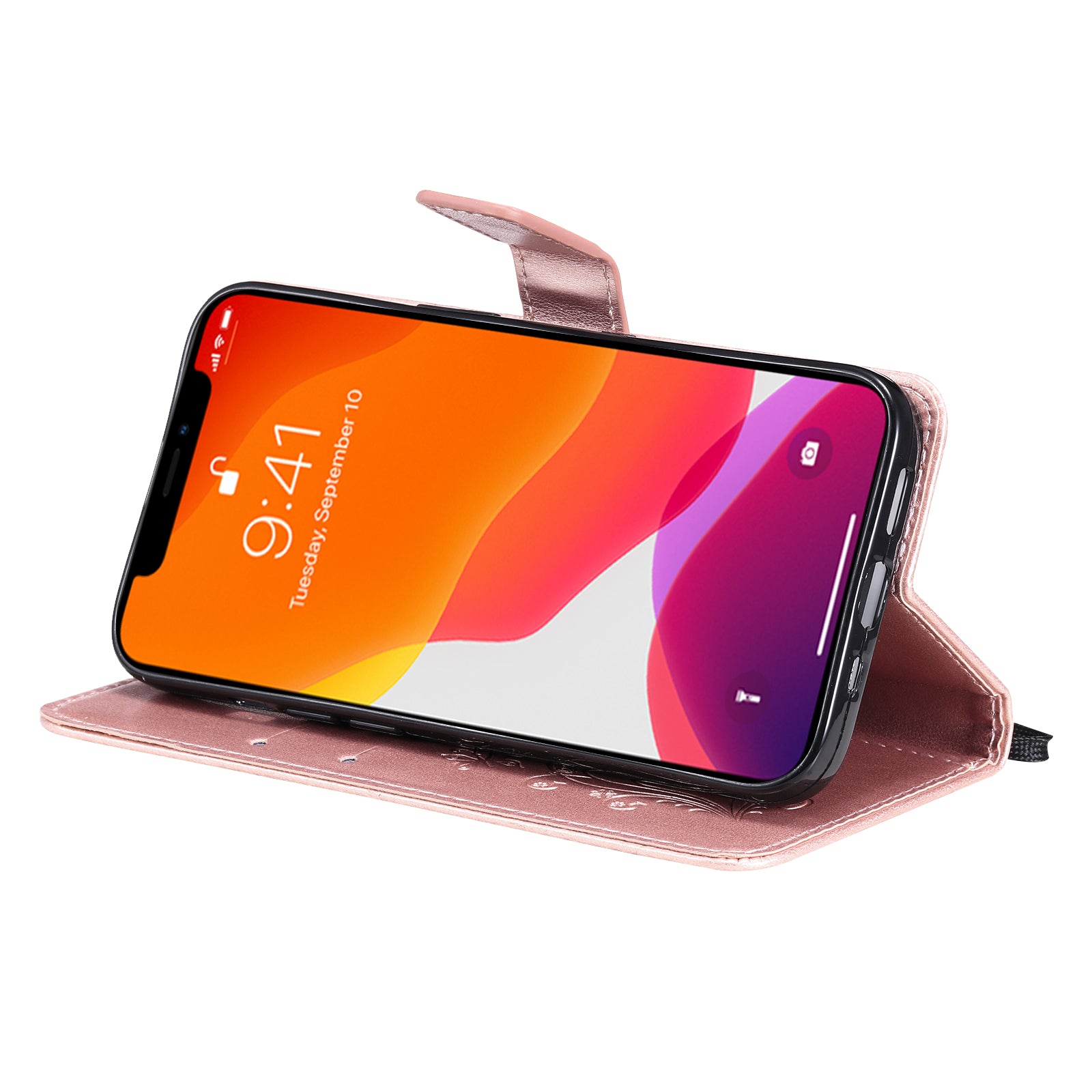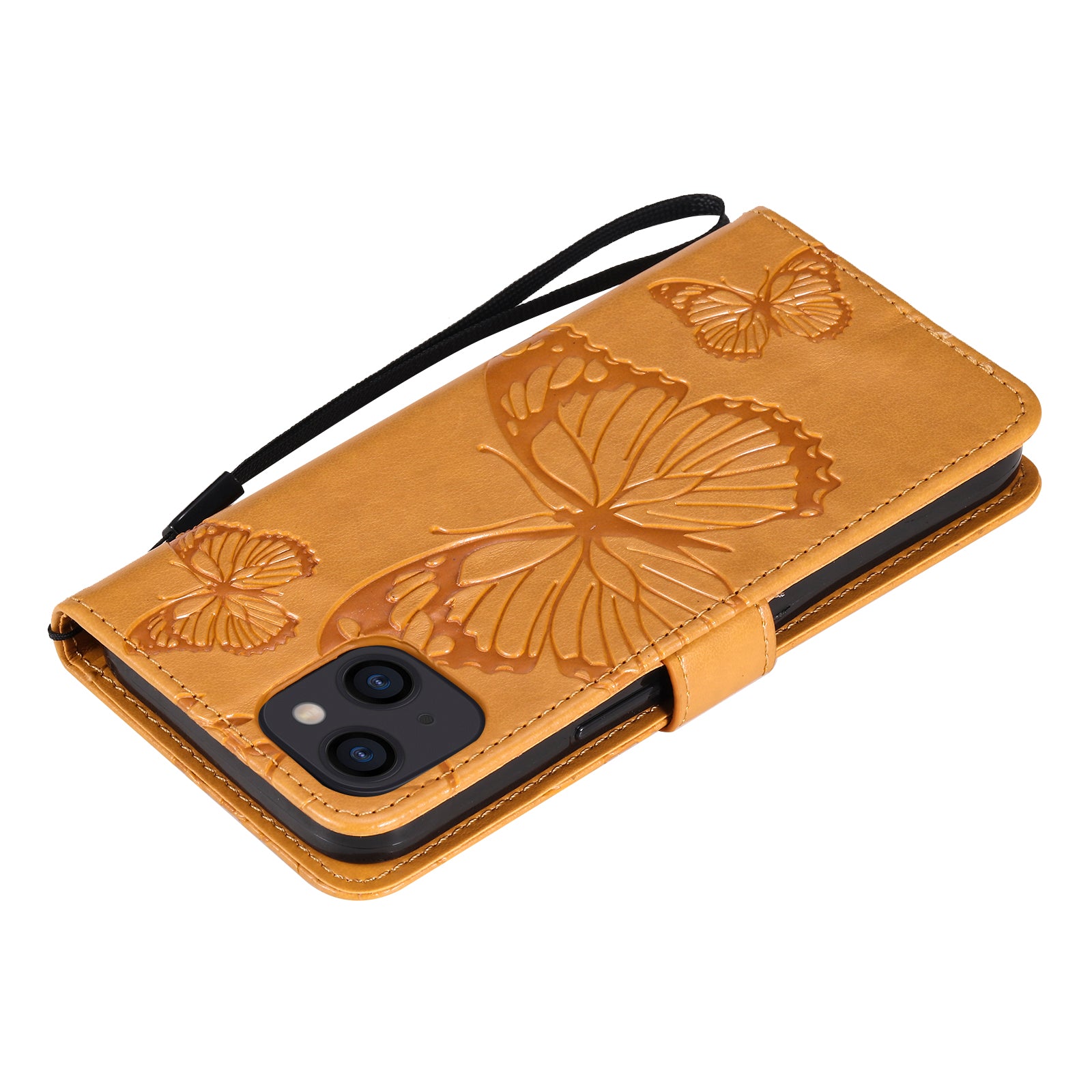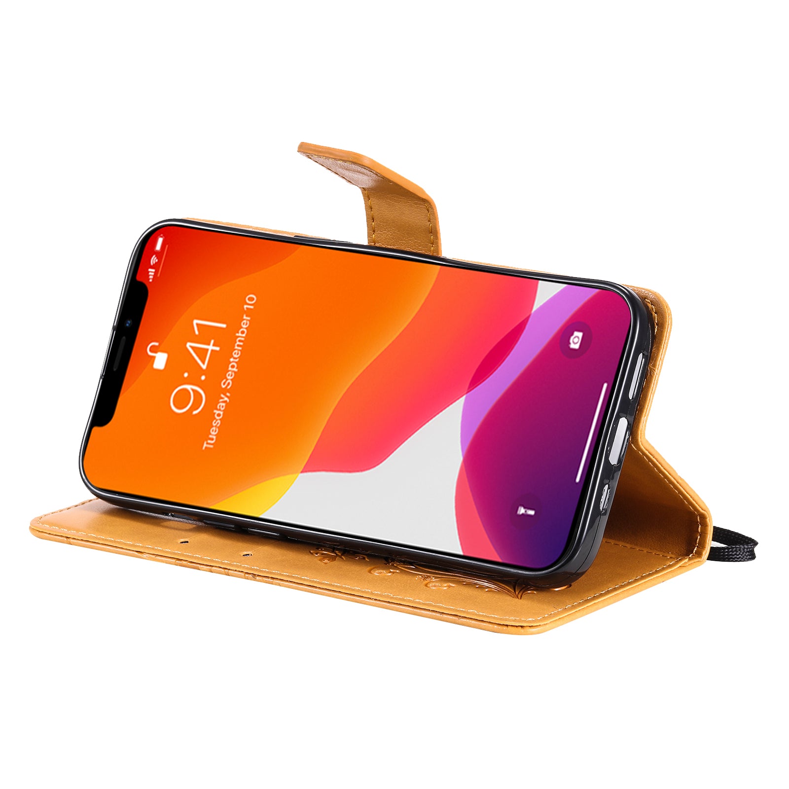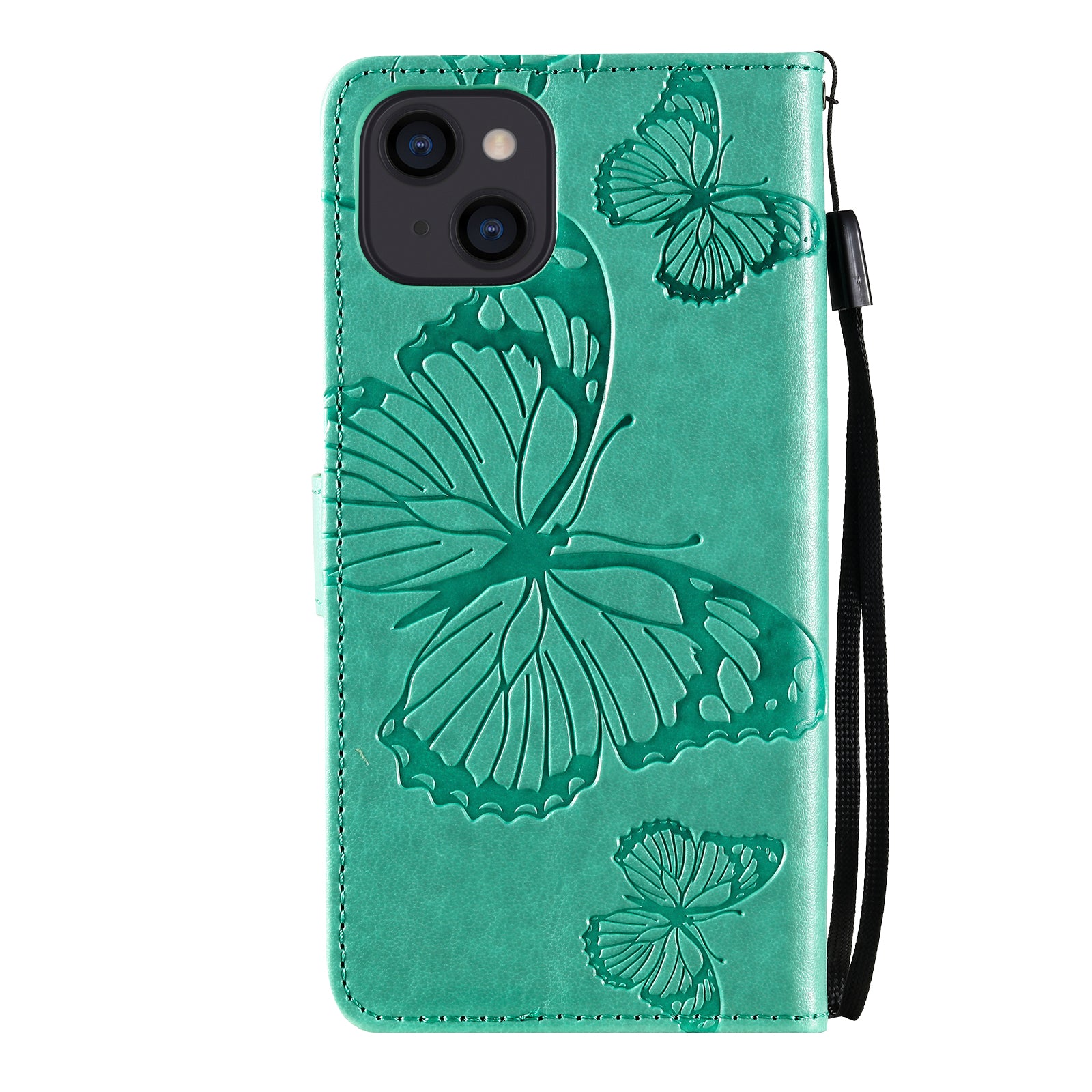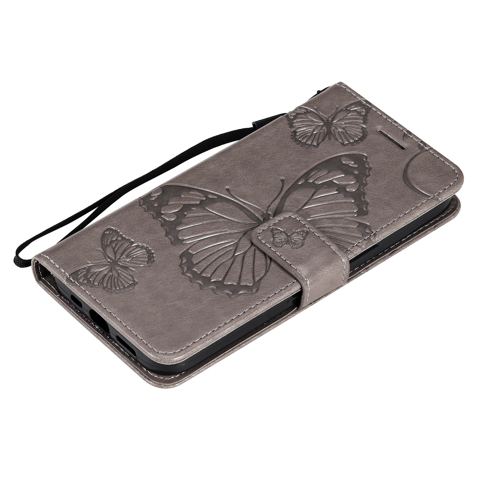 KT Imprinting Flower Series-2 For iPhone 15 Butterfly Imprint Leather Phone Case Wallet Stand Cover