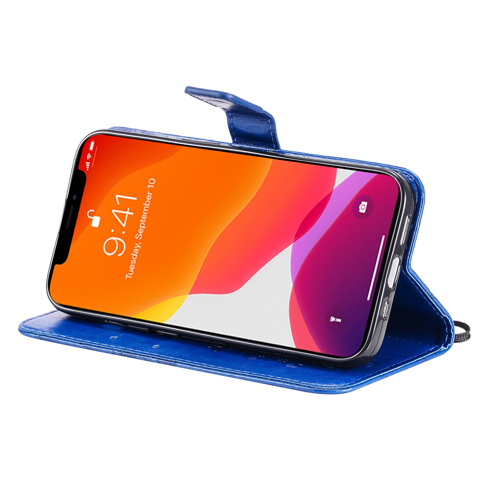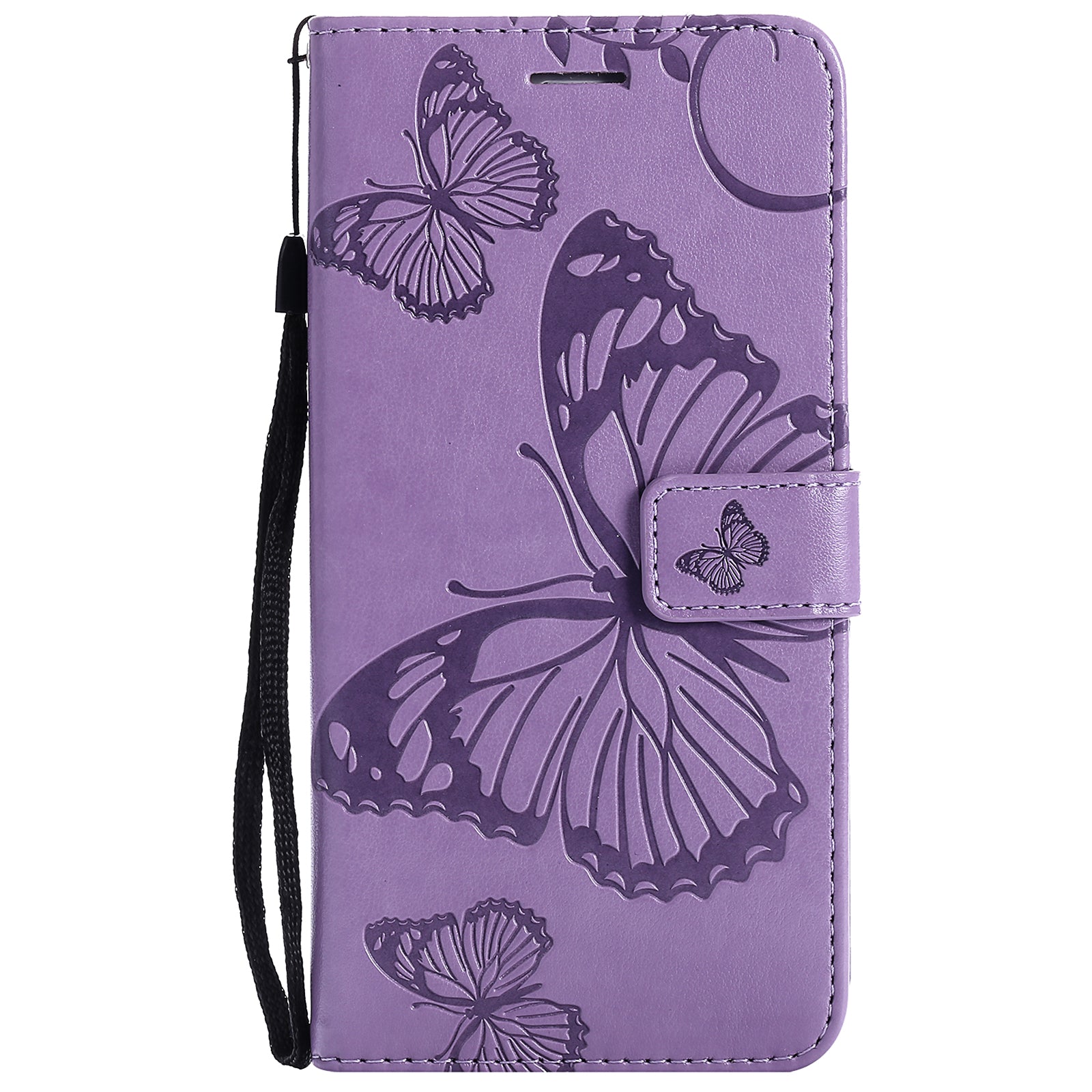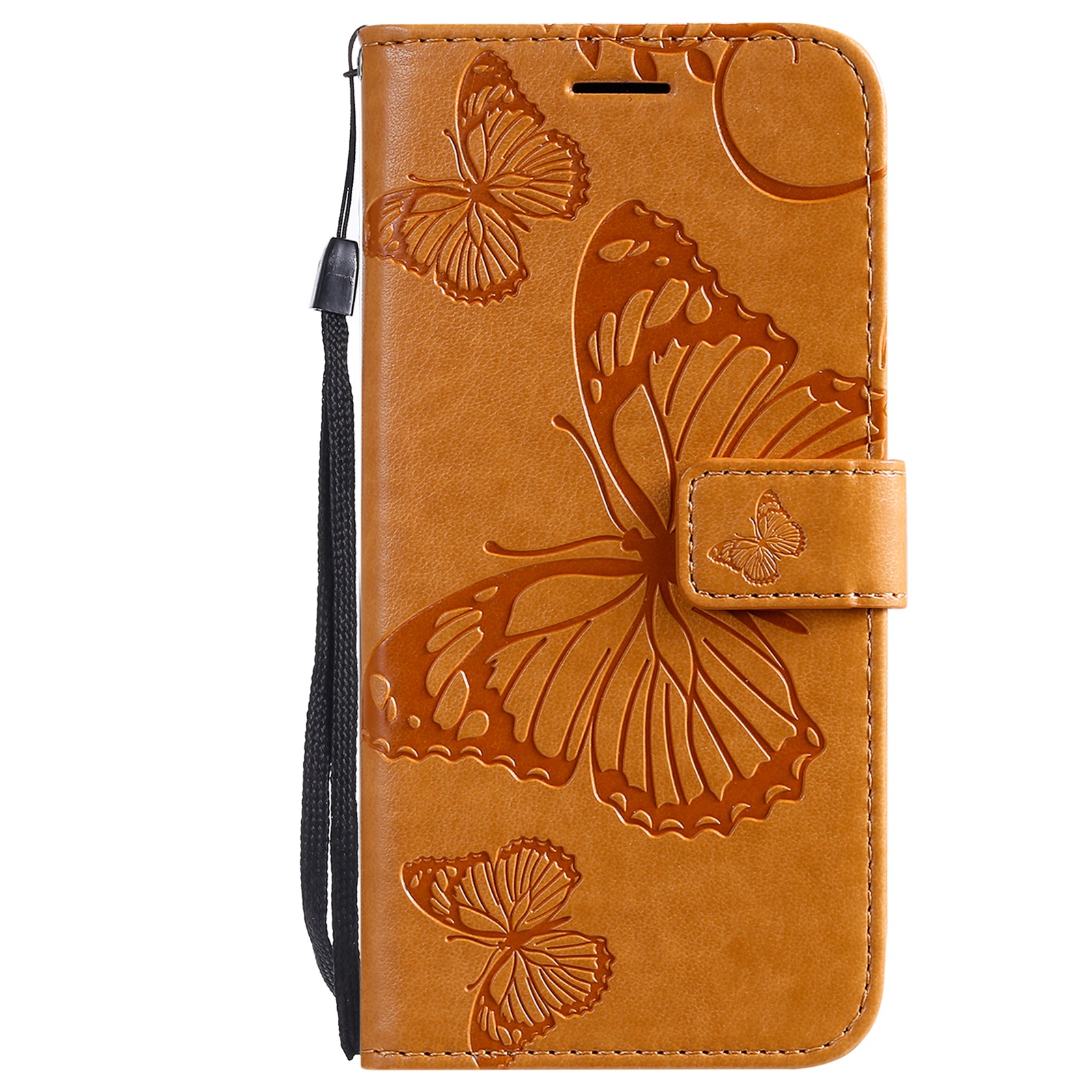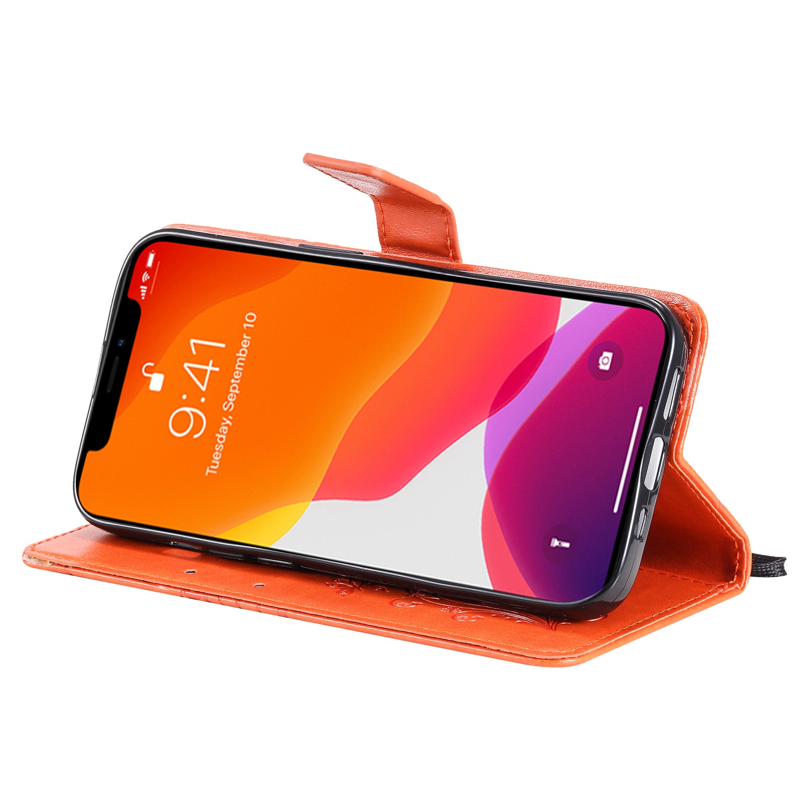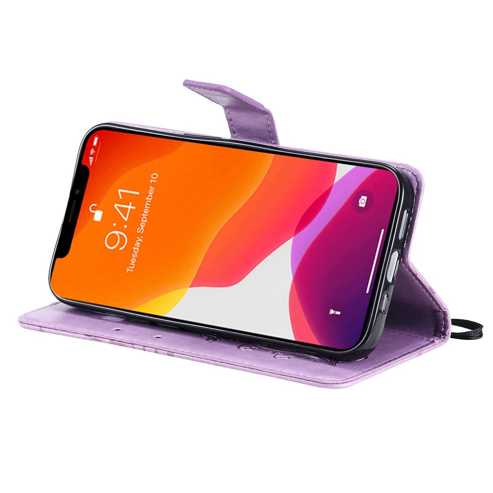 KT Imprinting Flower Series-2 For iPhone 15 Butterfly Imprint Leather Phone Case Wallet Stand Cover