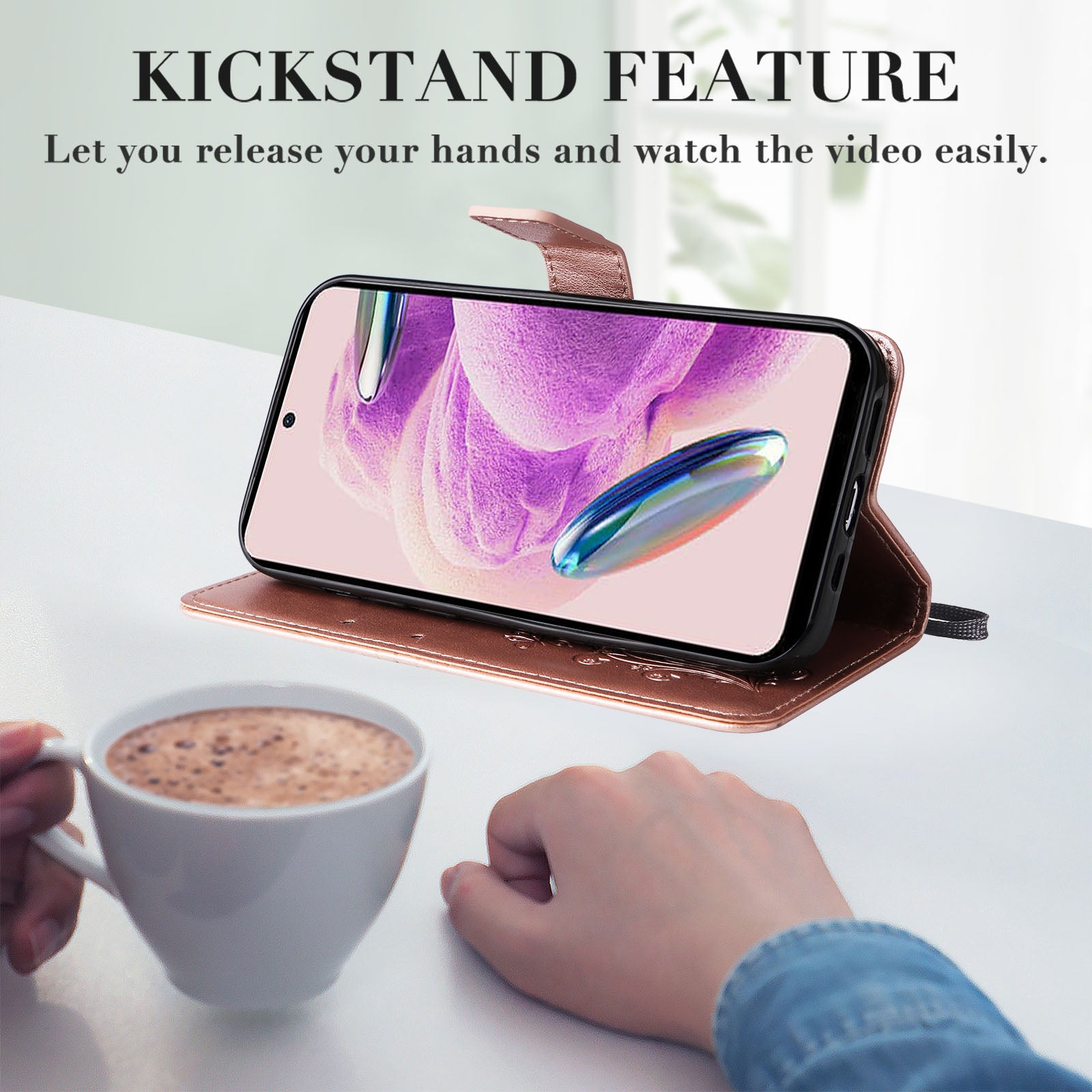 KT Imprinting Flower Series-2 For Xiaomi Redmi Note 12S 4G / Note 11 4G (Qualcomm) / Note 11S 4G Cellphone Leather Case Butterfly Imprint Wallet Stand Cover