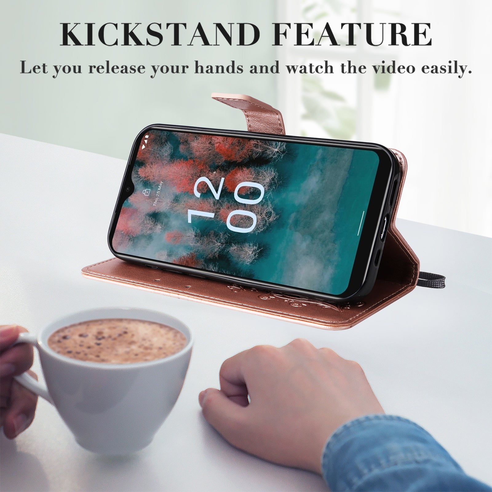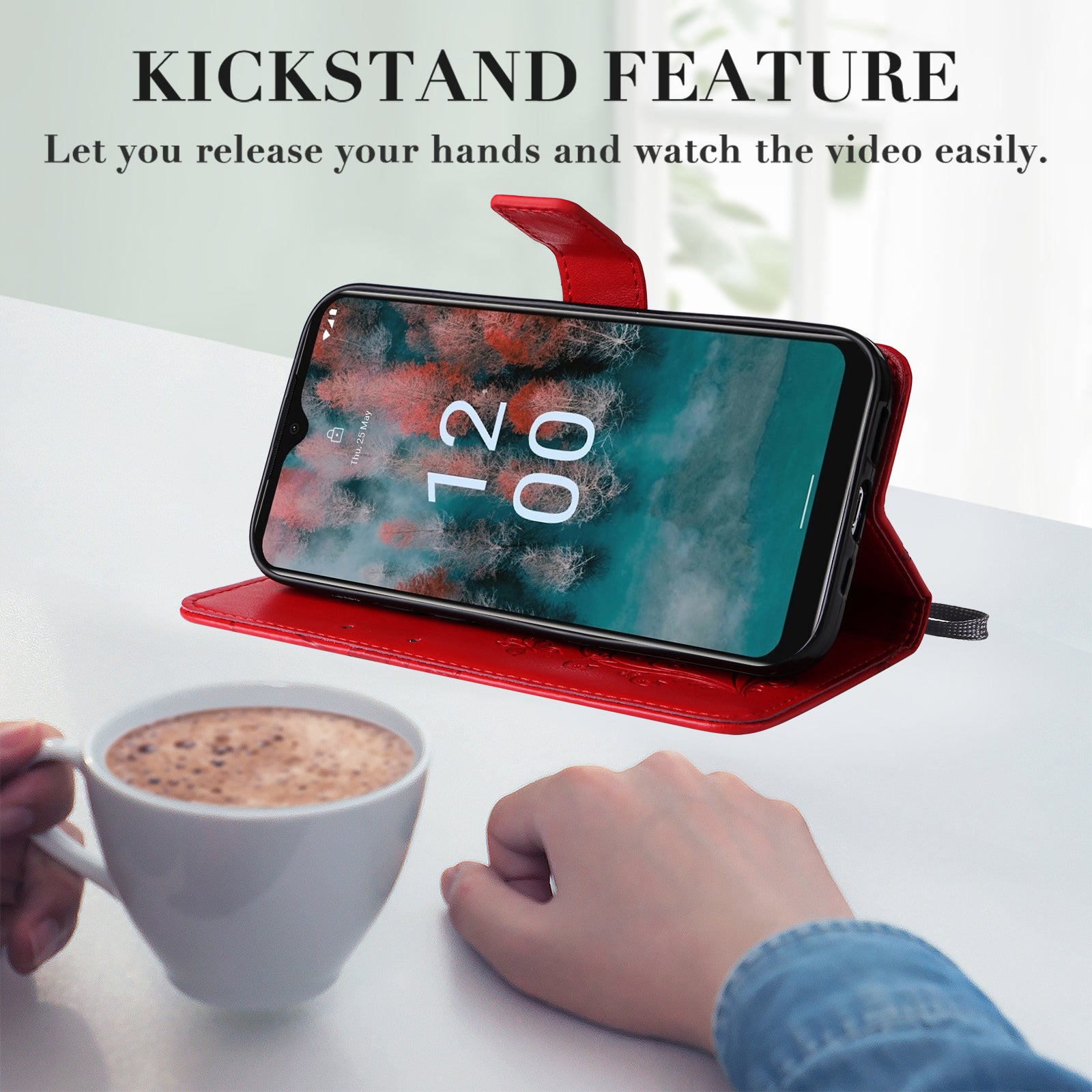 - Foldable and stable stand with adjustable angle for a hands-free viewing