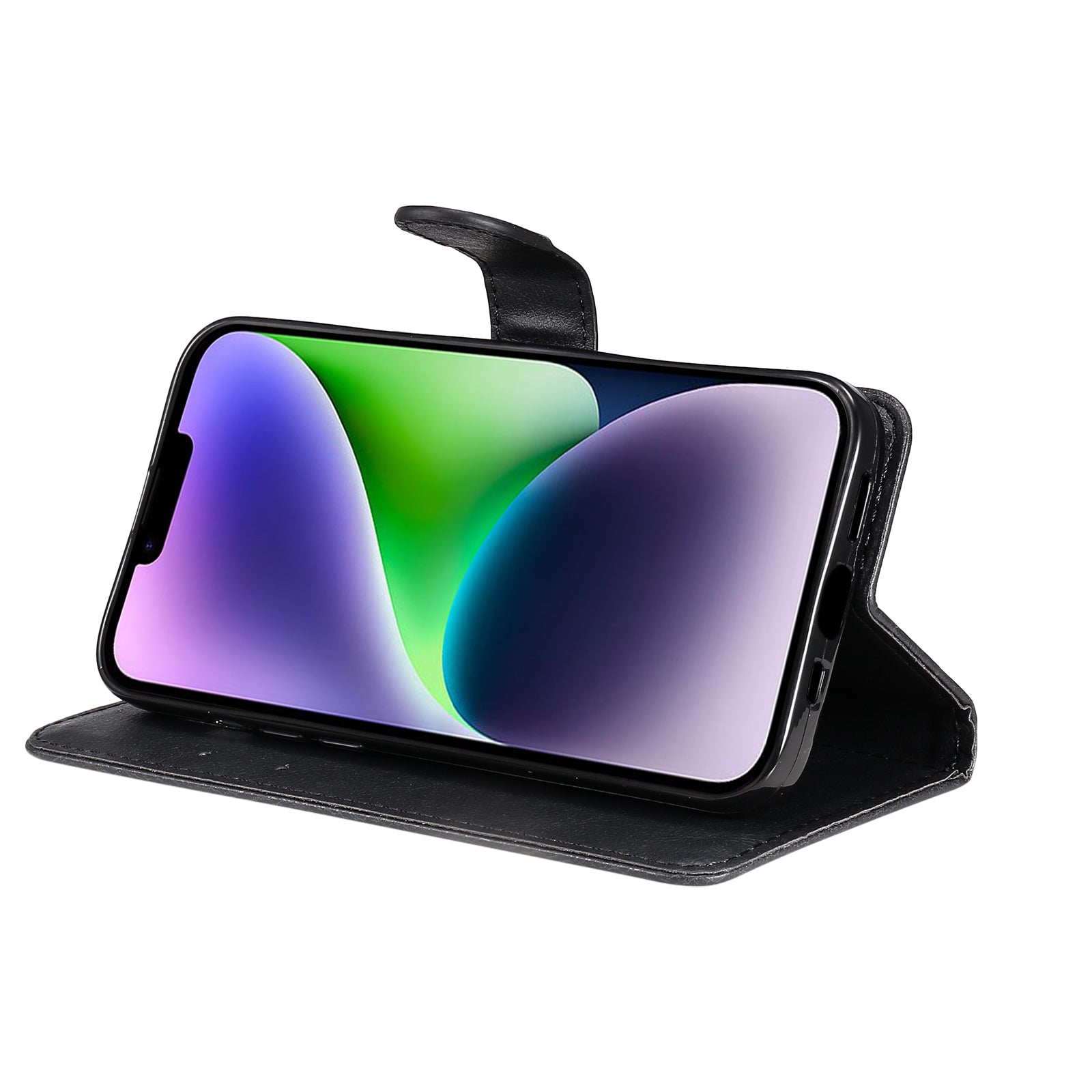KT Leather Series-2 PU Leather Phone Cover for iPhone 15 Plus , Solid Color Phone Case with Wallet Stand