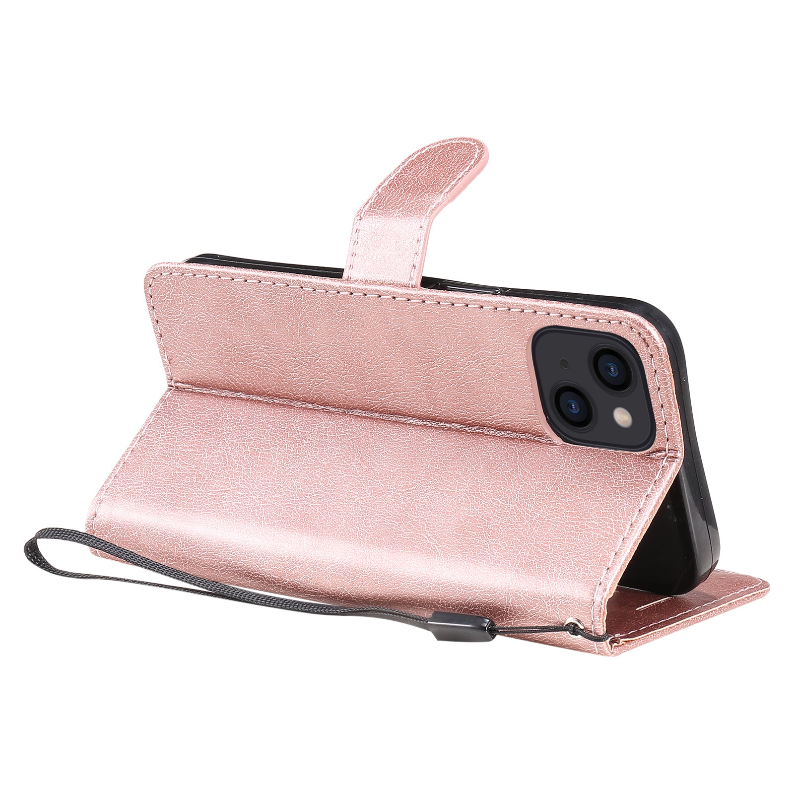 KT Leather Series-2 PU Leather Stand Case for iPhone 15 , Solid Color Wallet Full Protection Phone Cover