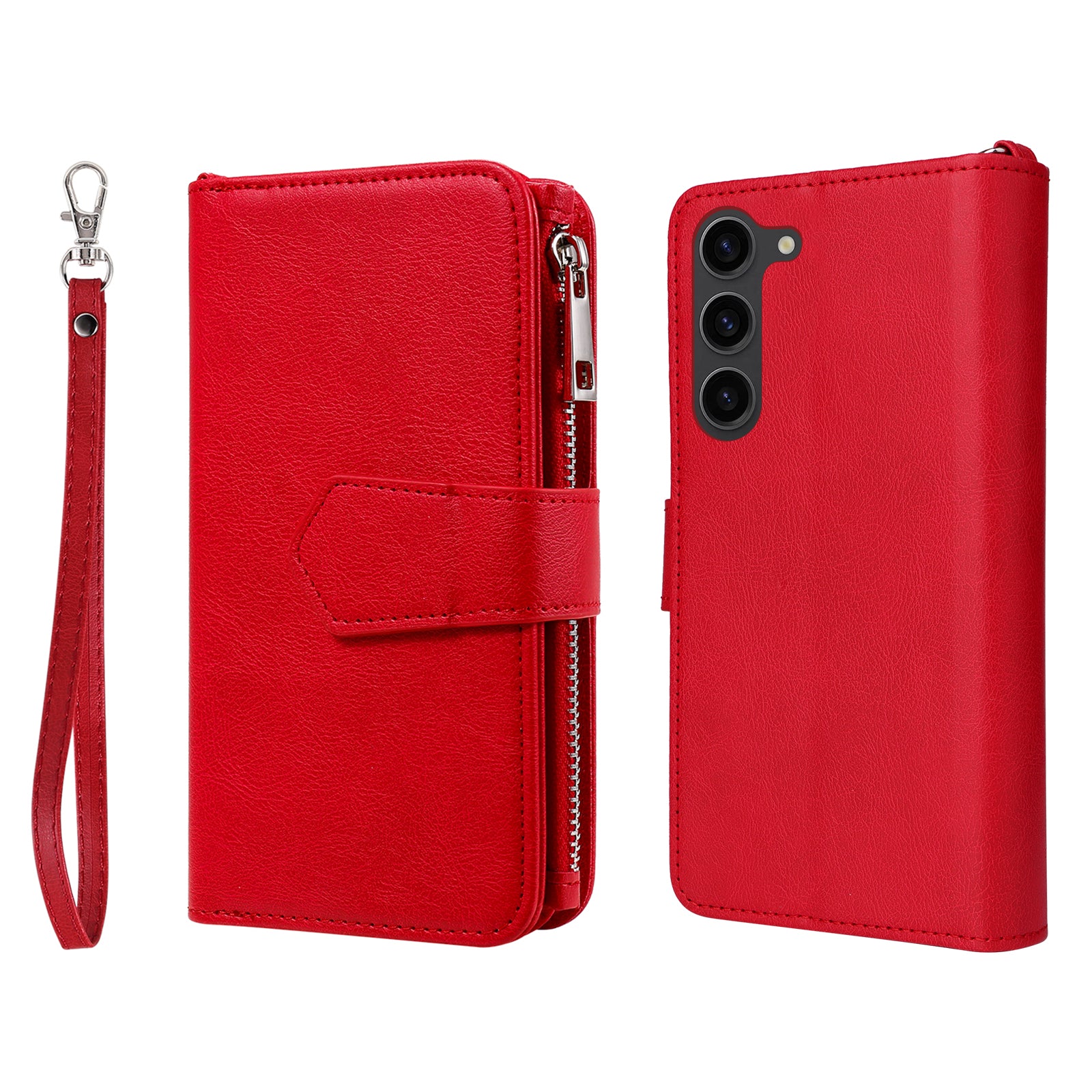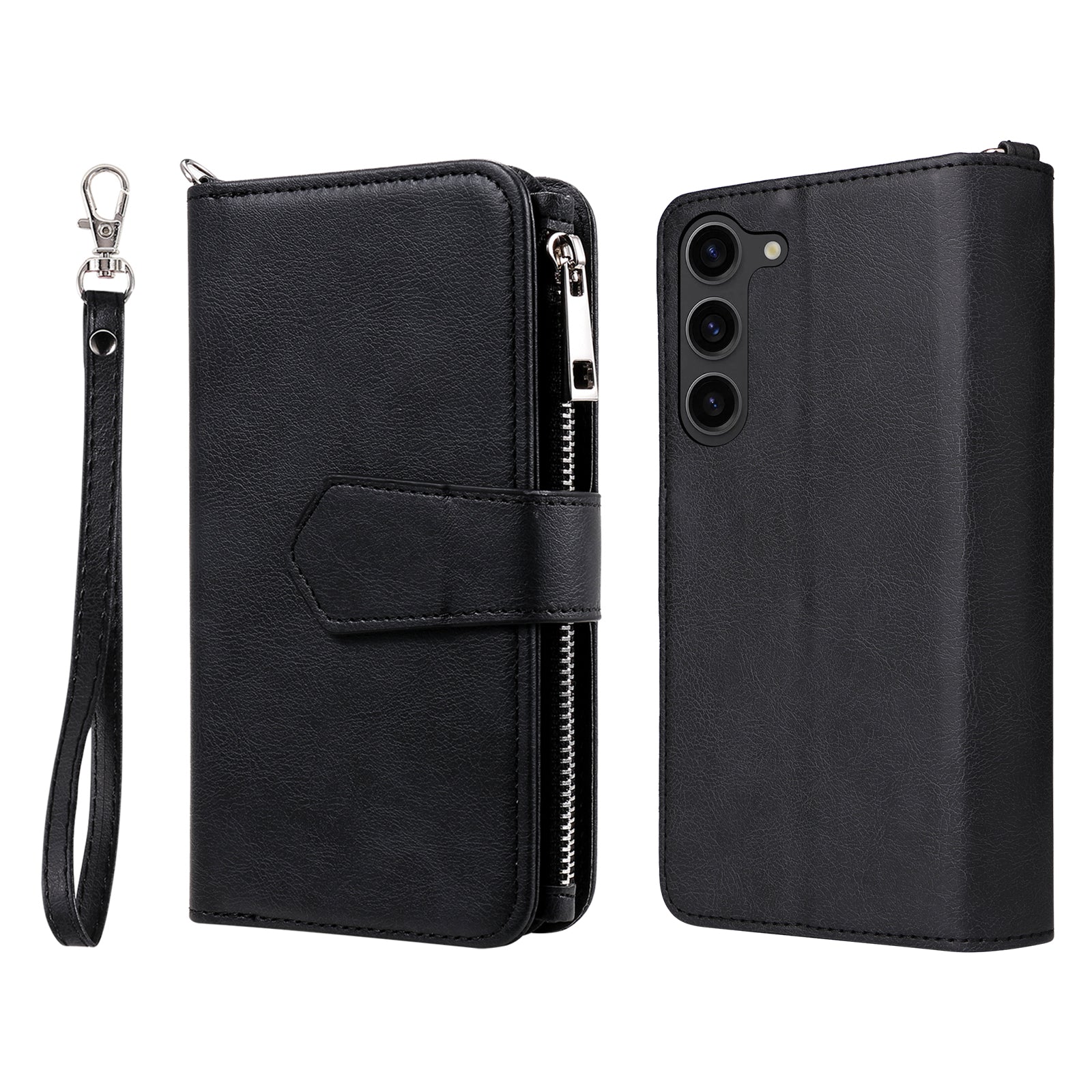 KT Multi-functional Series-4 Leather Phone Case for Samsung Galaxy S23+ , Wallet Stand Zipper Detachable Magnetic Cover