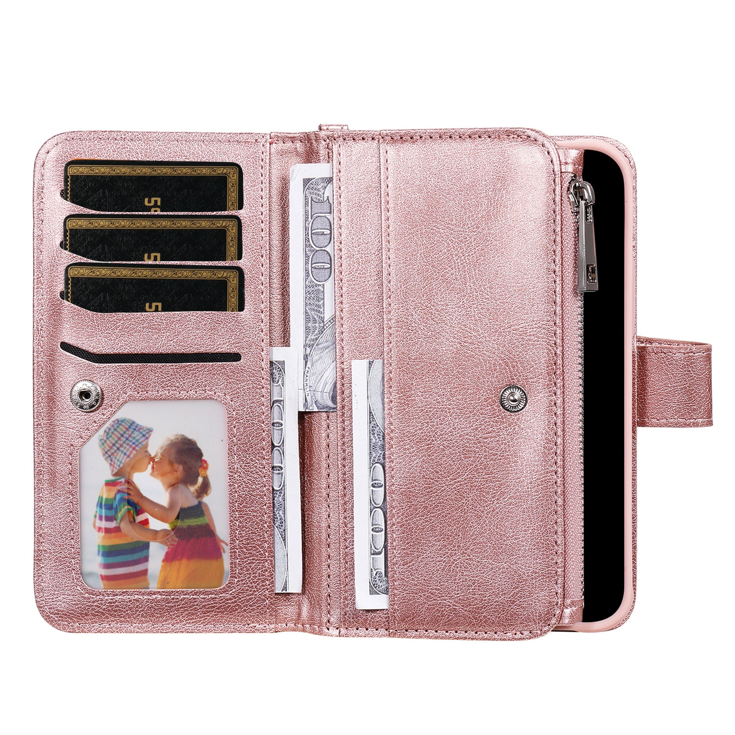 - Designed with multiple card slots and cash compartment for cash and cards storage
