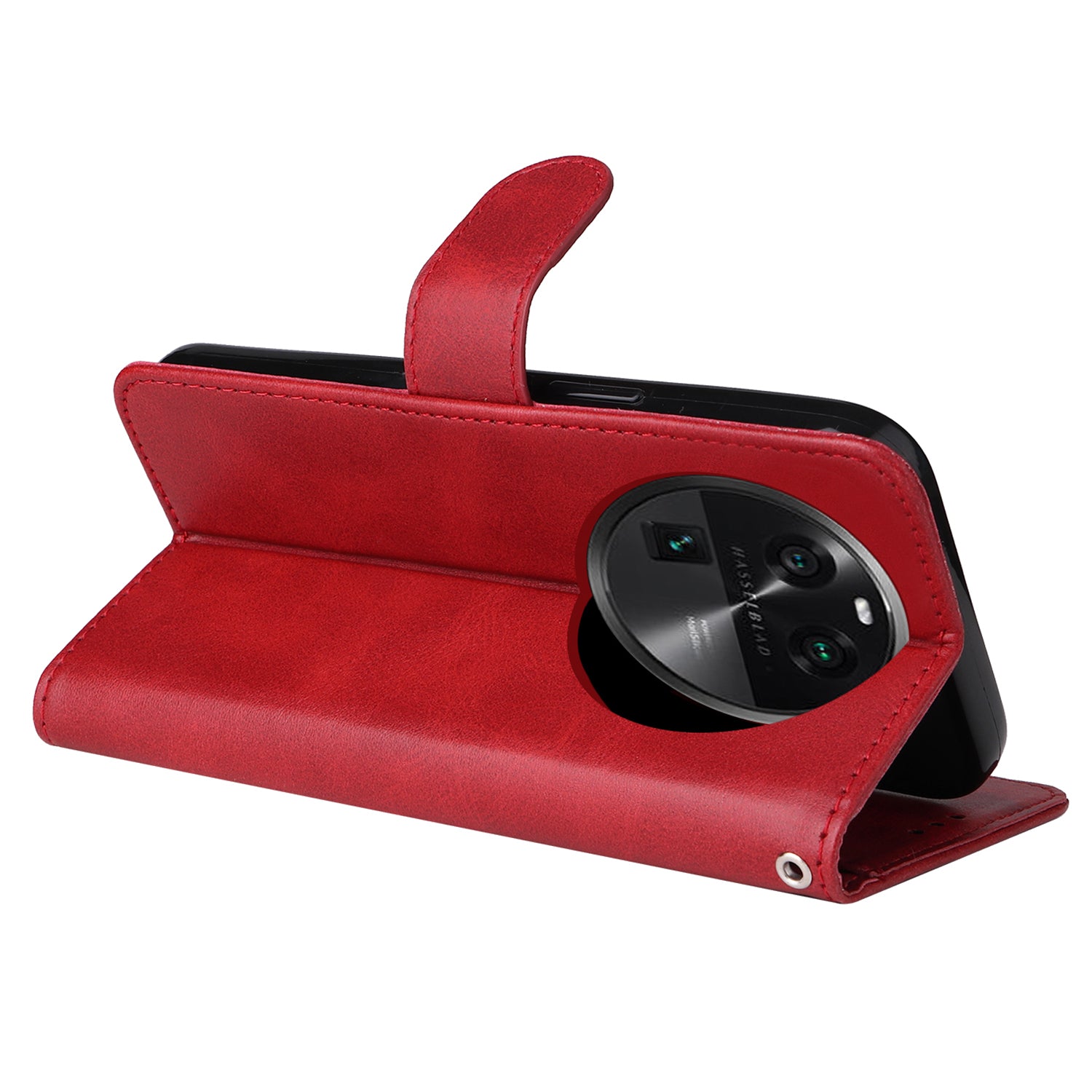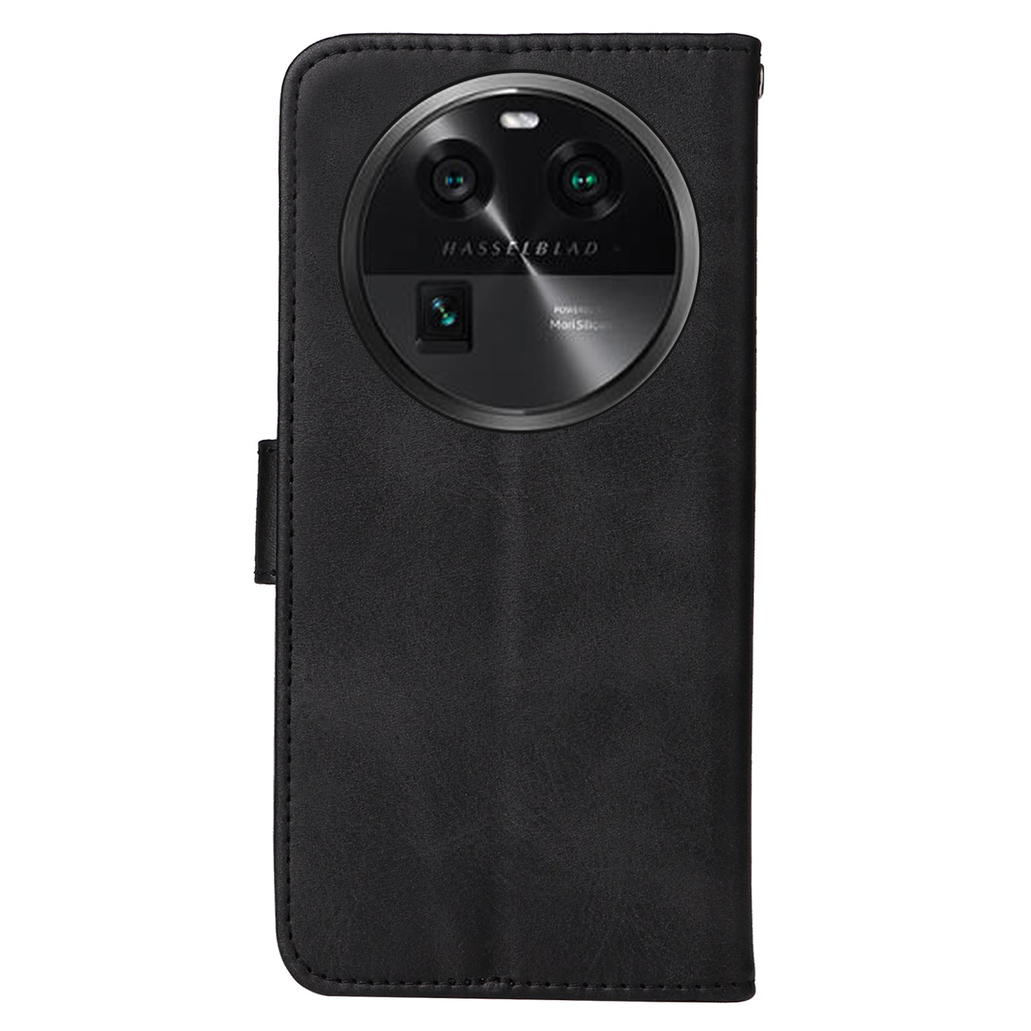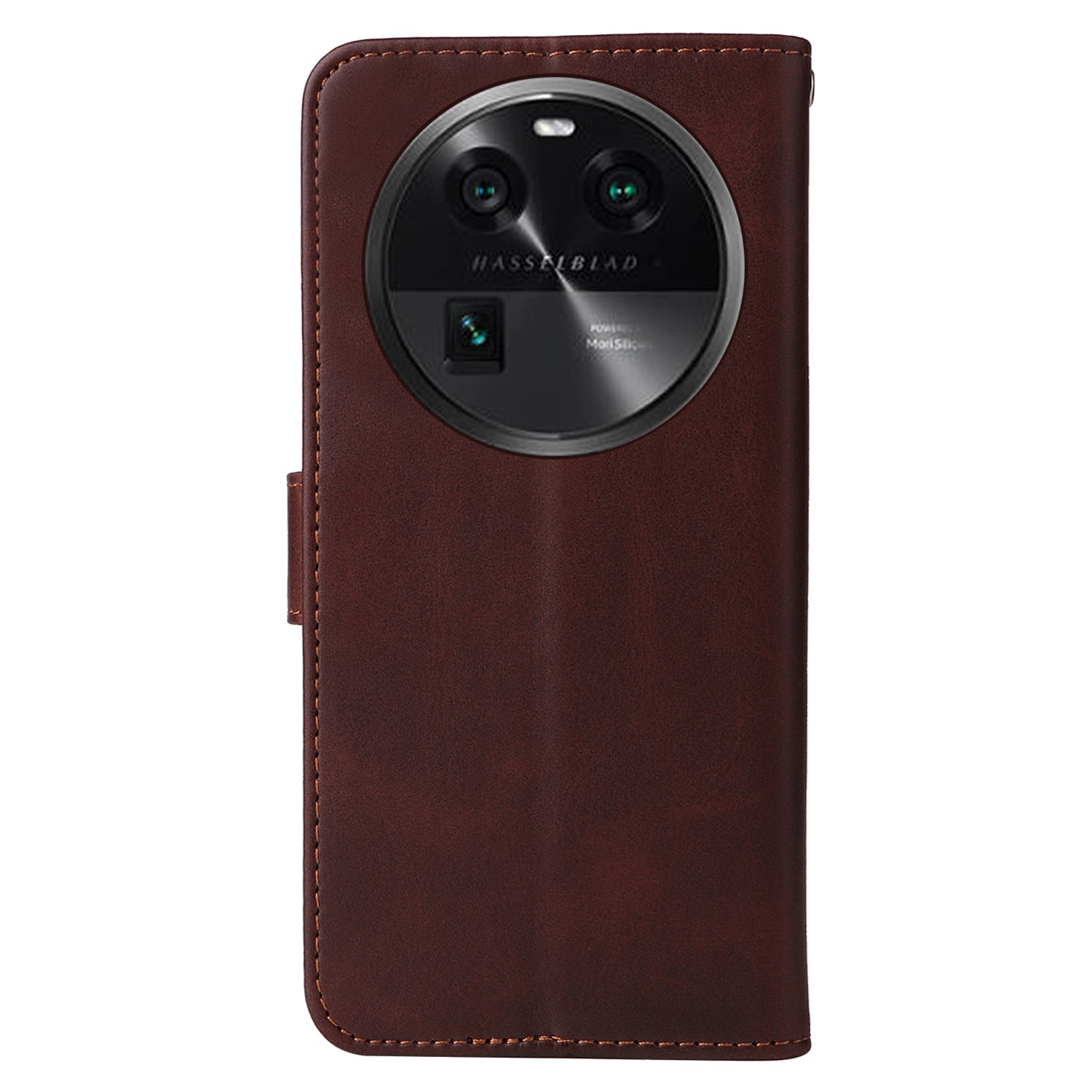 Leather Case for Oppo Find X6 Calf Texture Wallet Stand Shockproof Cell Phone Cover with Strap