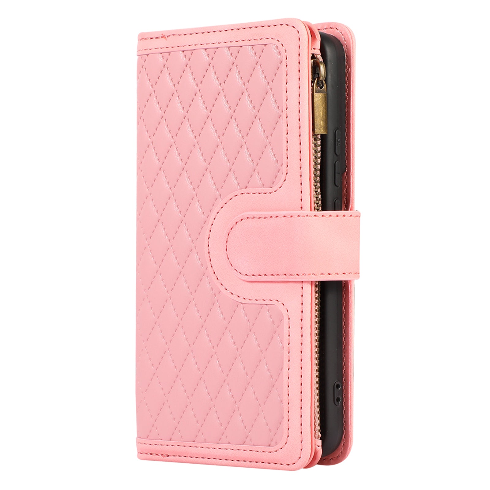 Leather Phone Case for Samsung Galaxy S22+ 5G 9 Card Slots Zipper Pocket Rhombus Imprint Stand Wallet Cover