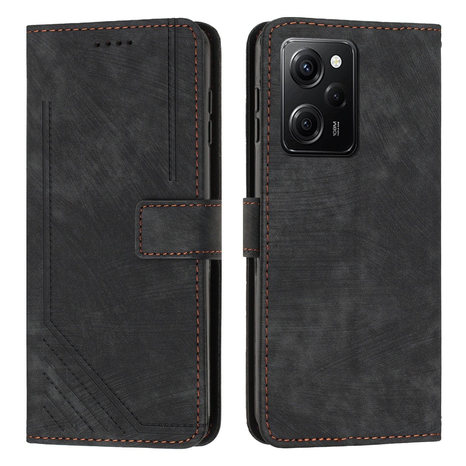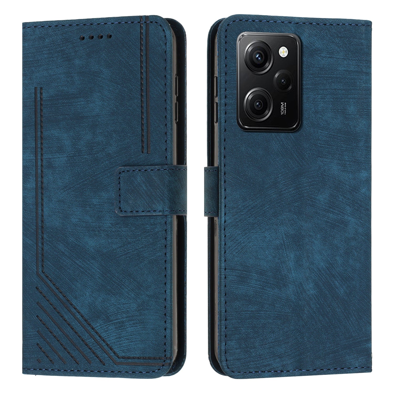 Leather Phone Case For Xiaomi Poco X5 Pro 5G / Redmi Note 12 Pro Speed 5G / Note 12 Pro 5G , Lines Imprinted Wallet Stand Cover