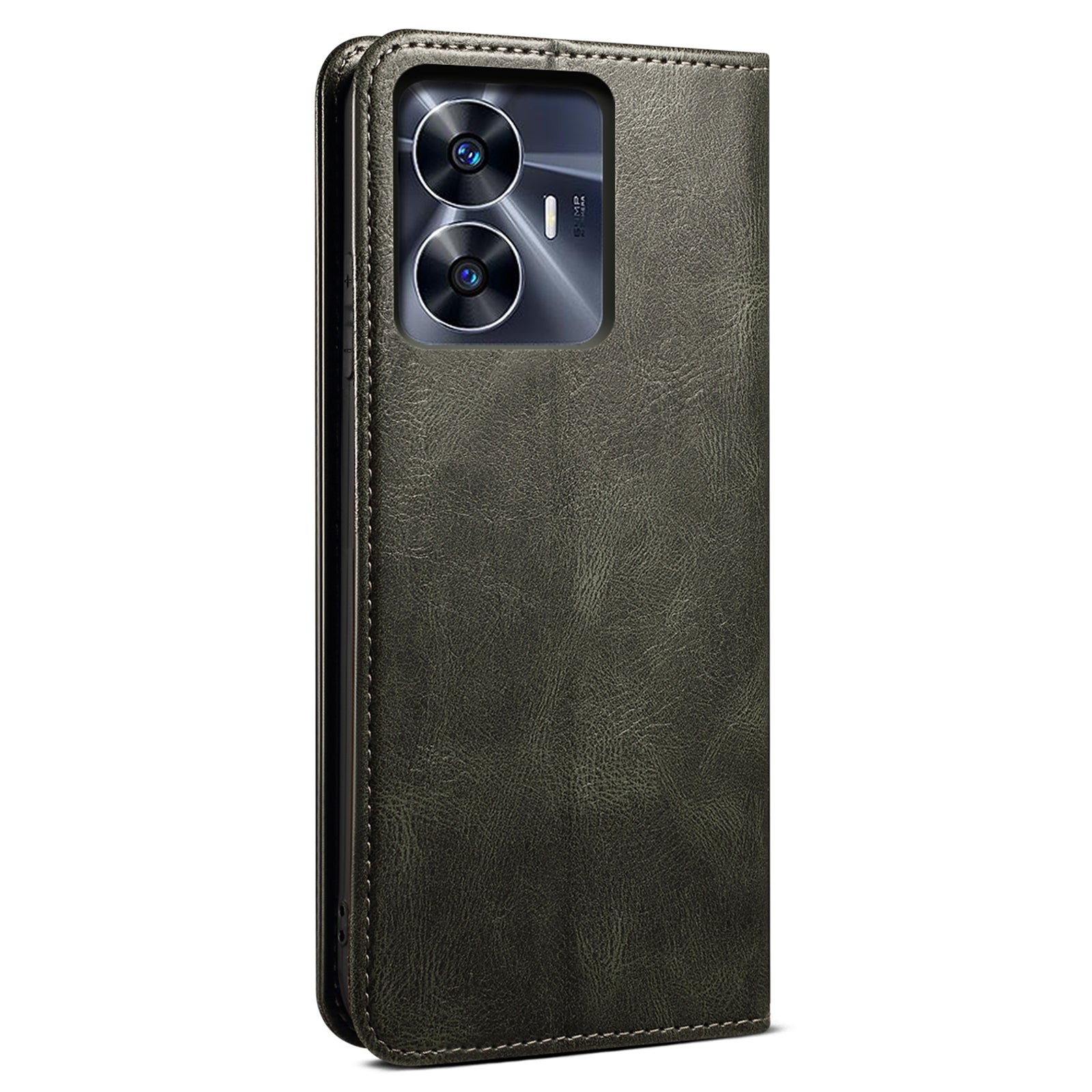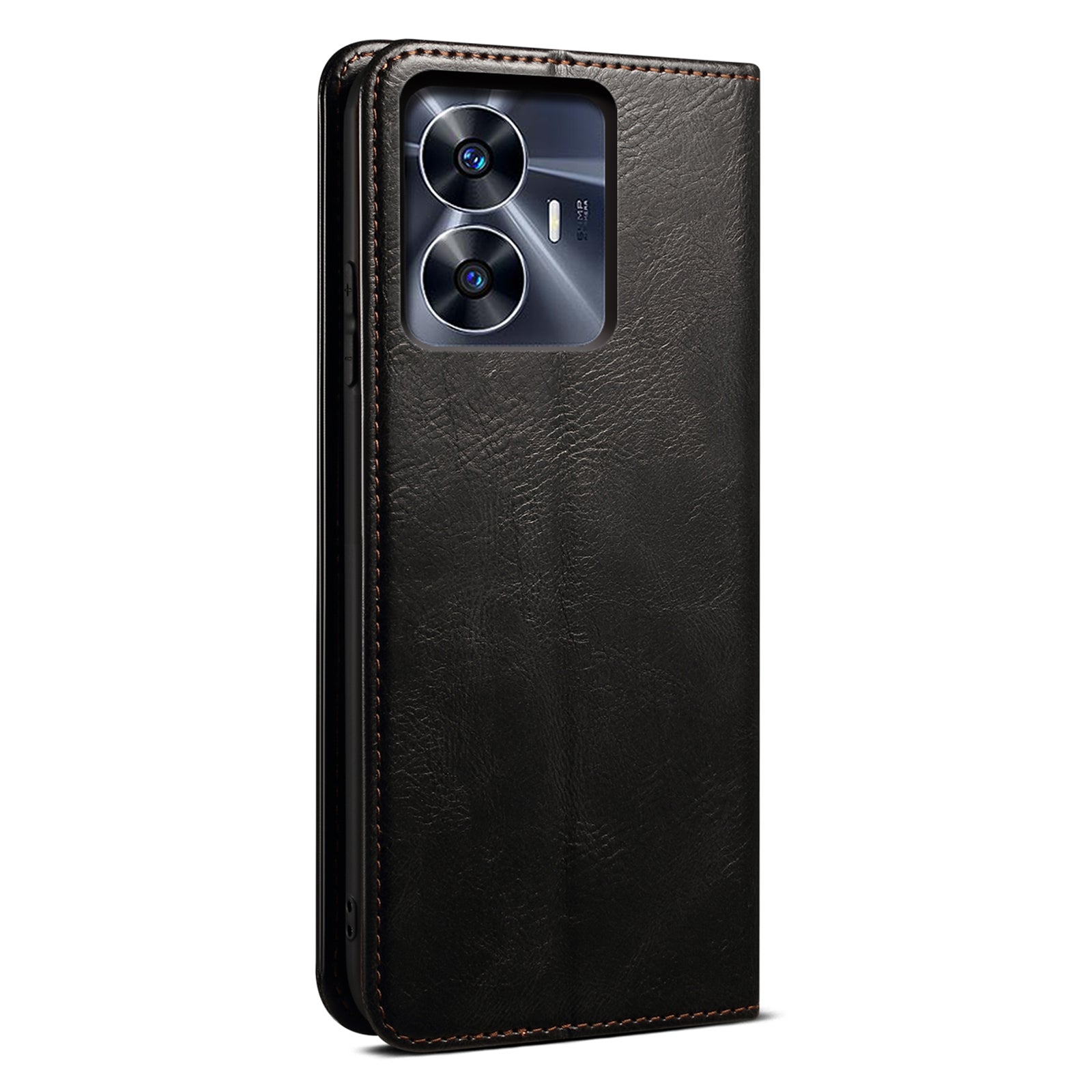 Leather Phone Cover for Realme C55 , Waxy Crazy Horse Texture Phone Case with Stand Wallet