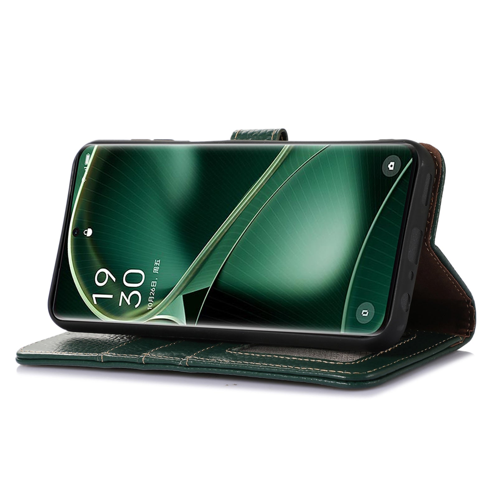 Litchi Texture Cover for Oppo Find X6 , RFID Blocking Phone Wallet Case Genuine Cow Leather Stand Shell