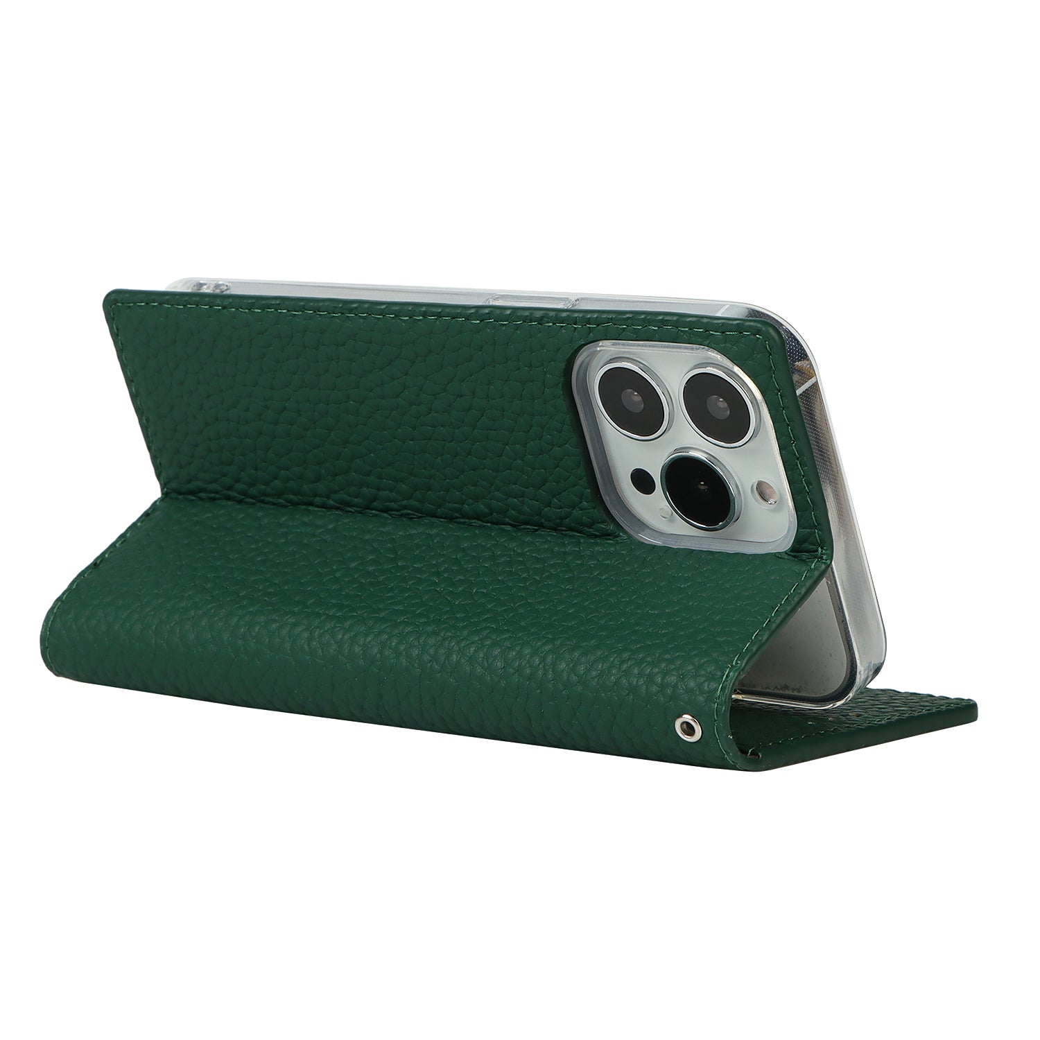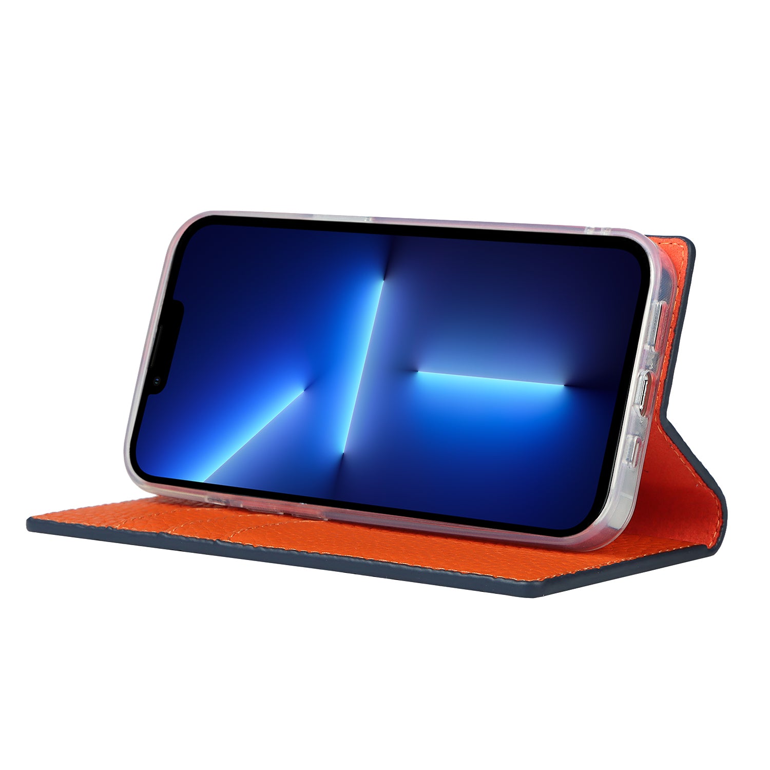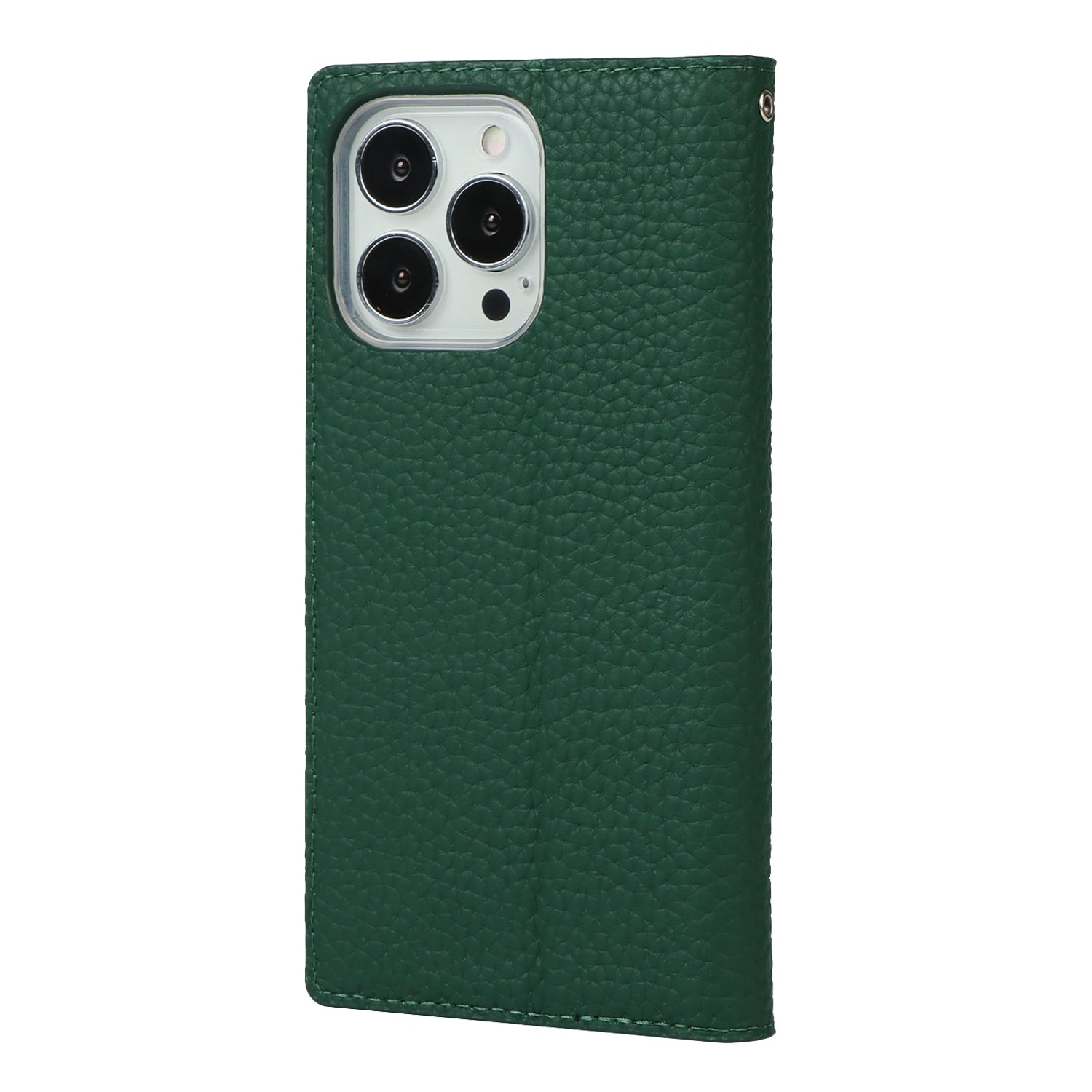 Litchi Texture Genuine Leather Cover Wallet Stand Flip Phone Case with Strap for iPhone 13 Pro 6.1 inch