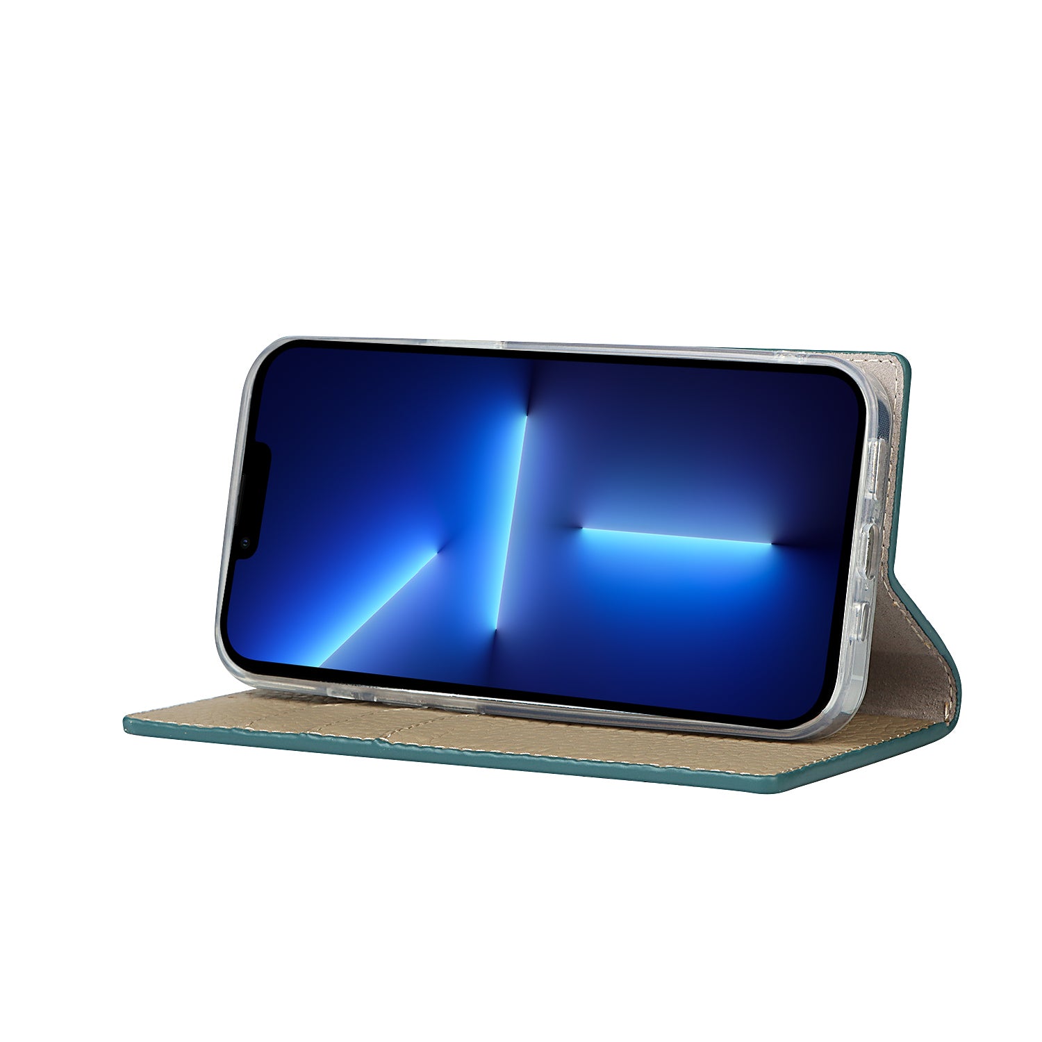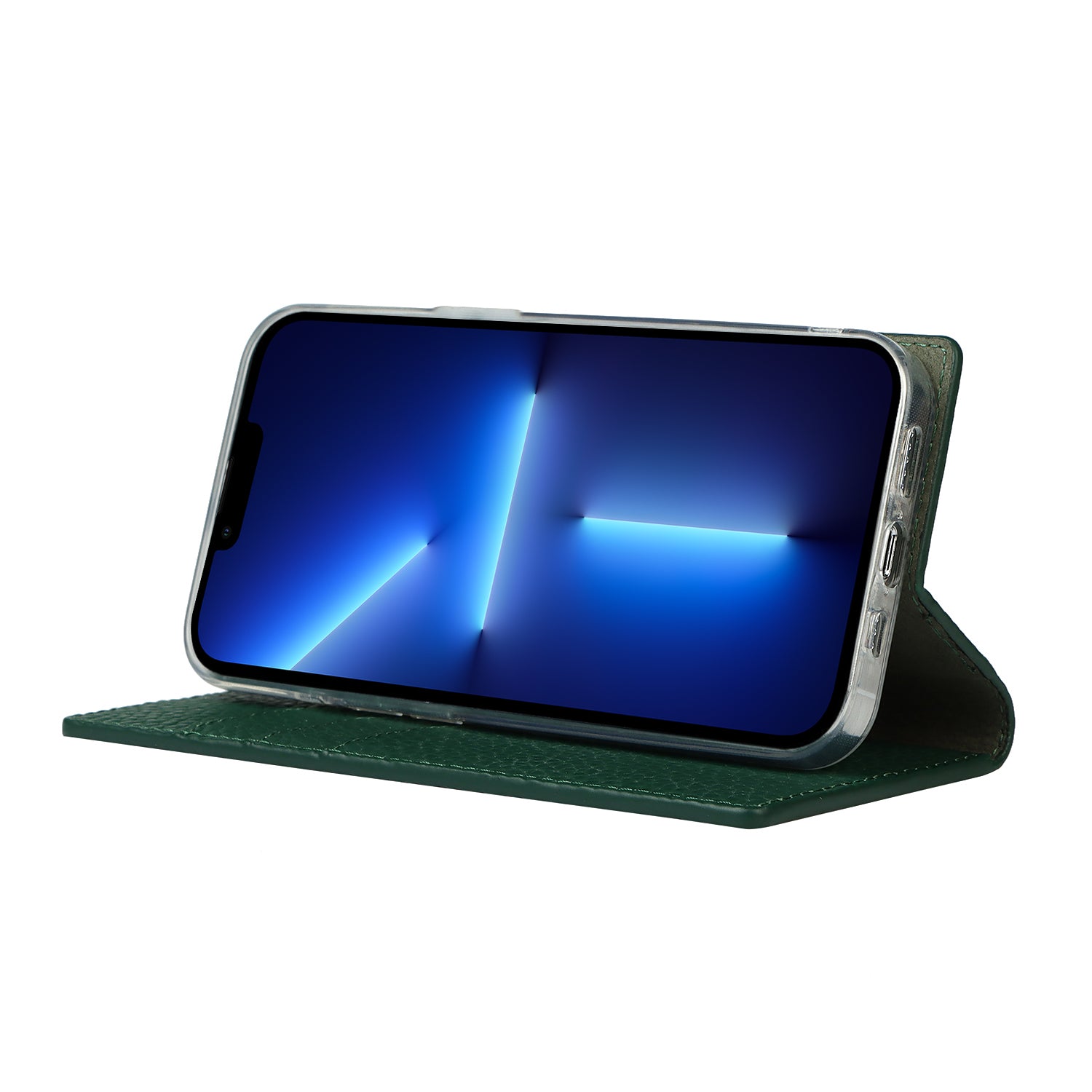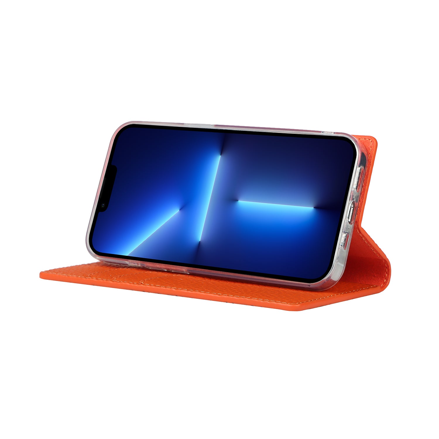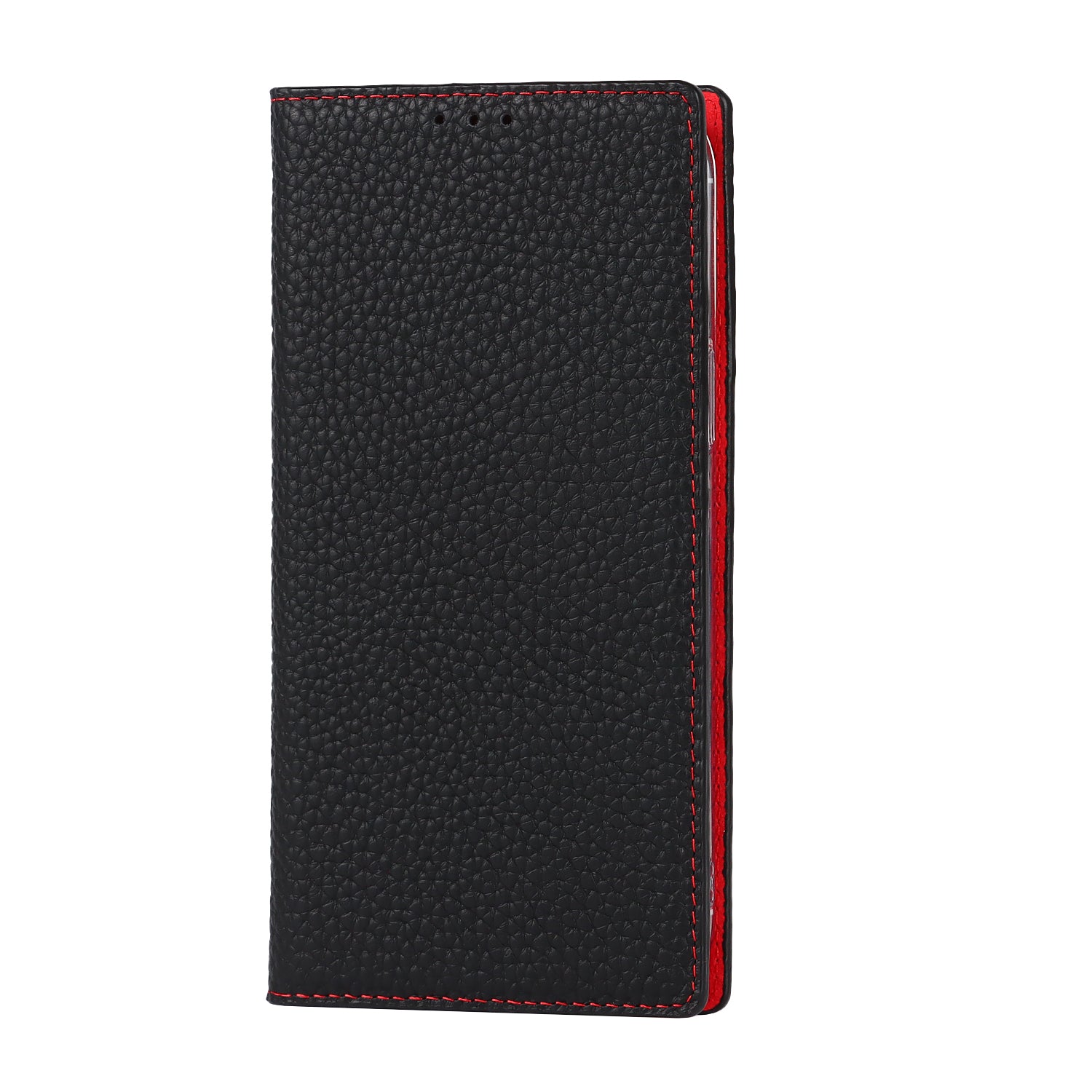 Litchi Texture Genuine Leather Cover Wallet Stand Flip Phone Case with Strap for iPhone 13 Pro 6.1 inch