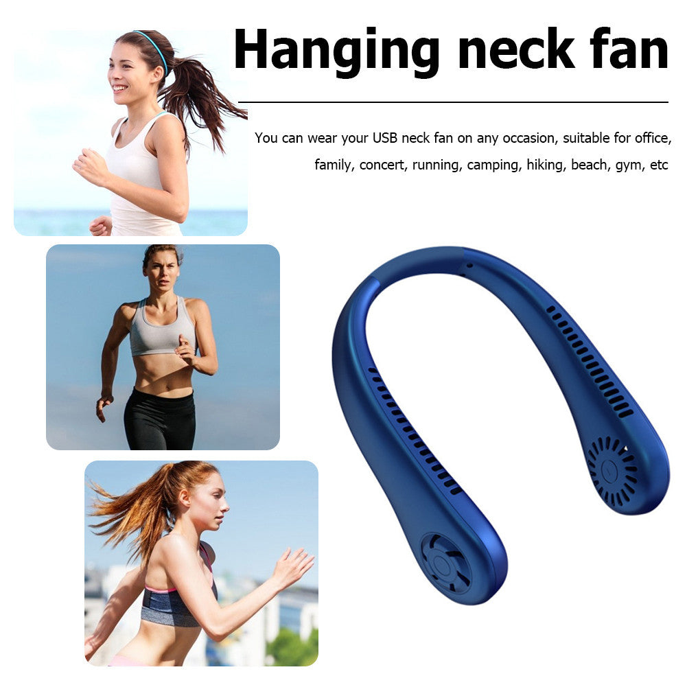 - USB rechargeable neck fan, convenient to charge via computer, cell phone charger, power bank, laptops, etc