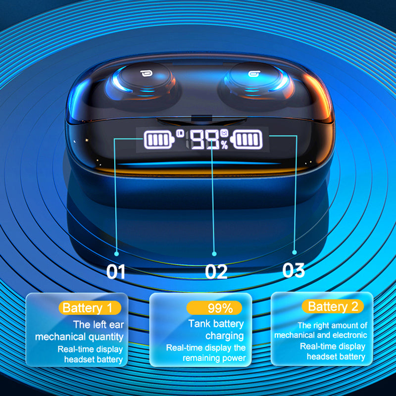 - LED digital display, the battery level of L/R earbuds and charging case are clear at a glance