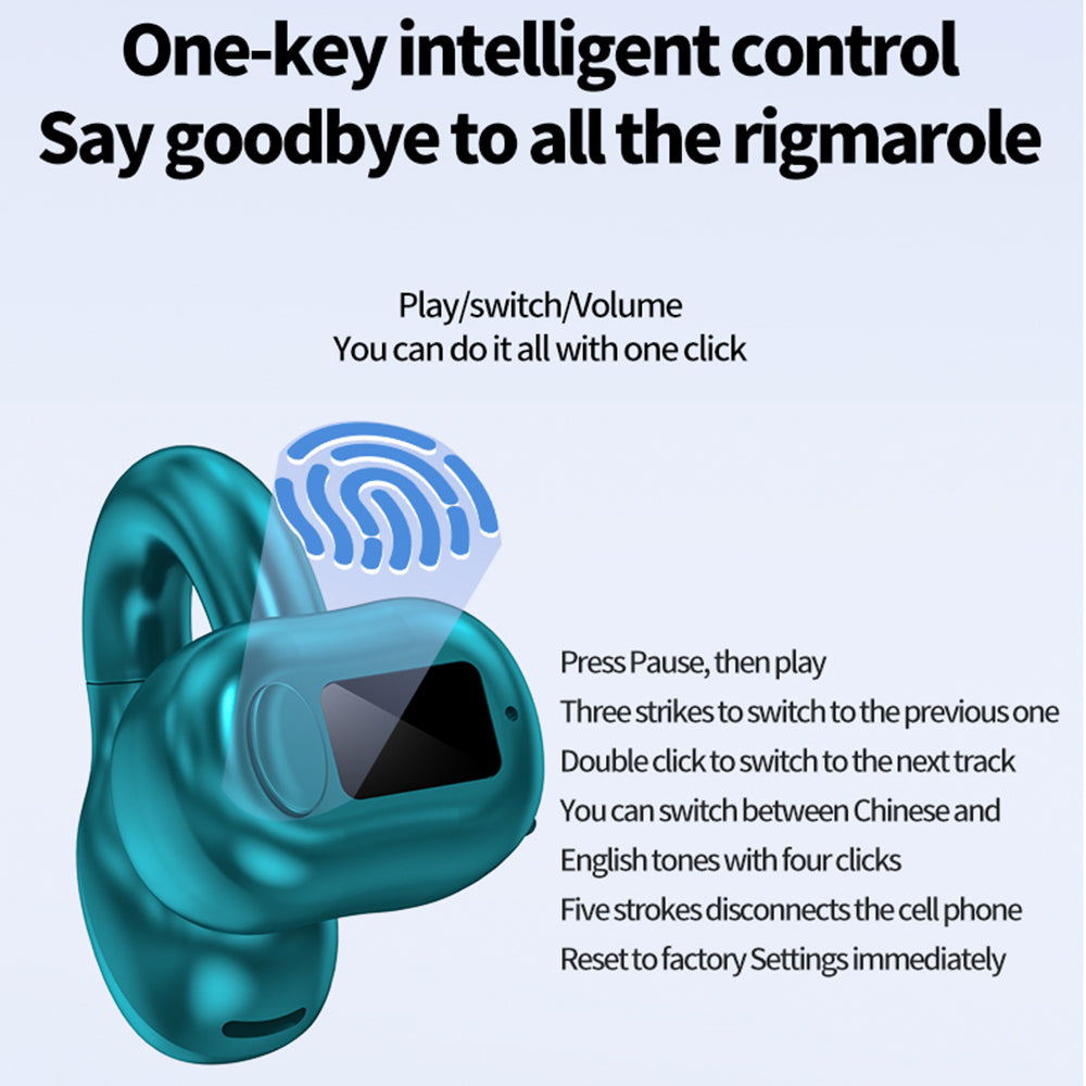 M10 Digital Display Clip-on Bluetooth Earphone HiFi Sound Single Ear Bendable Headphone
