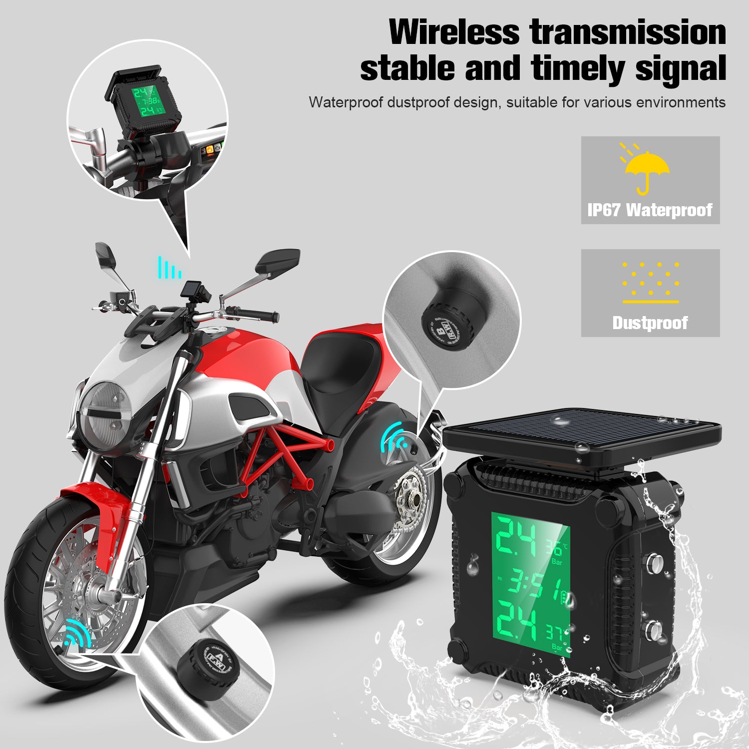 M9 Tire Pressure Monitoring System Wireless TPMS Motorcycle Solar Charge Tyre Alarm External Sensor