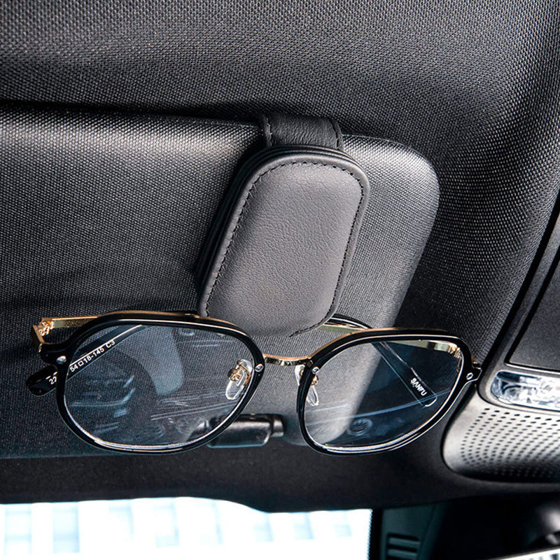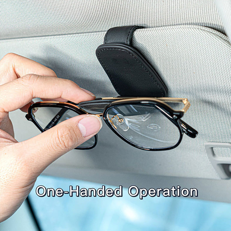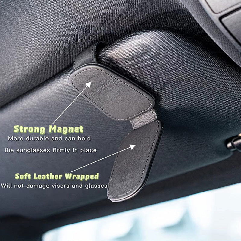 Magnetic Adsorption Car Sun Visor Glasses Holder PU Leather Sunglasses Card Ticket Clip