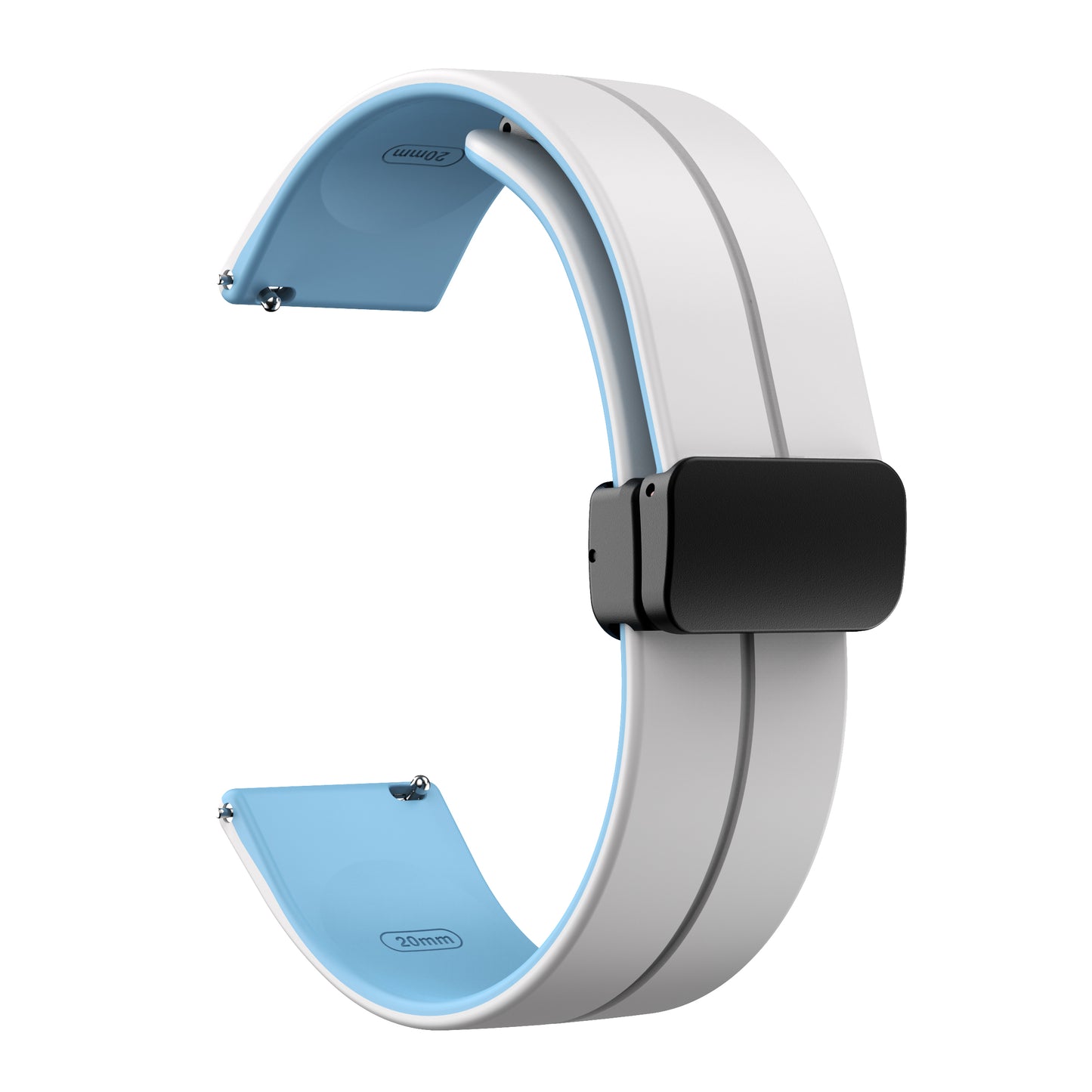 Magnetic Watch Band for Garmin vivomove Trend / Style / Luxe , 20mm Silicone Dual Color Sport Straps with Black Folding Buckle
