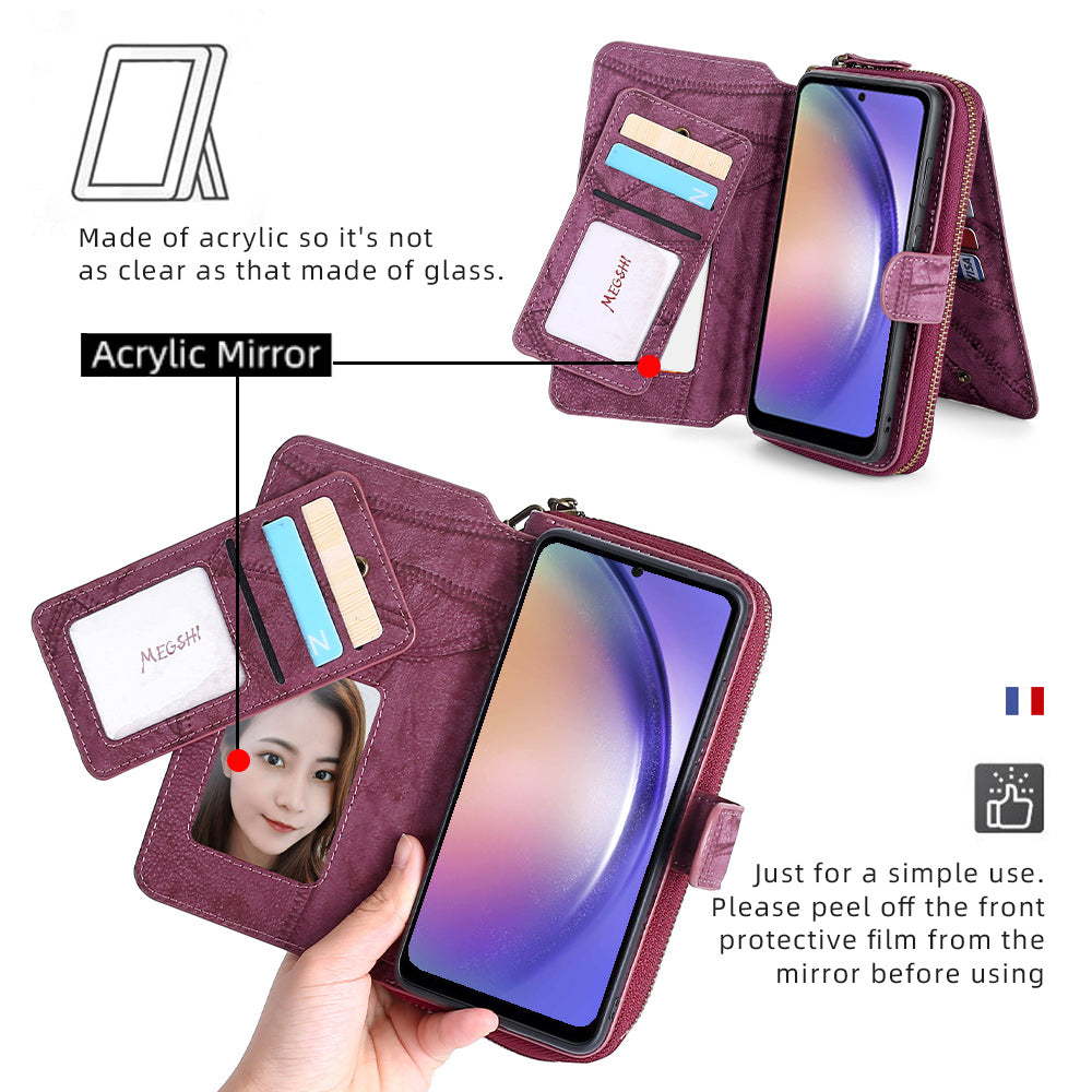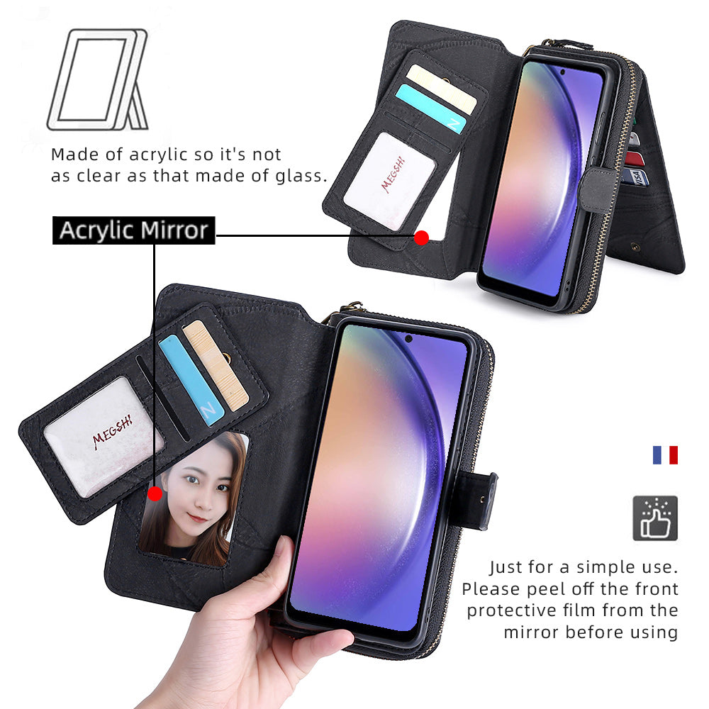 MEGSHI 004 Series For Samsung Galaxy A14 4G / 5G Zipper Wallet Case Detachable PU Leather Stand Phone Cover