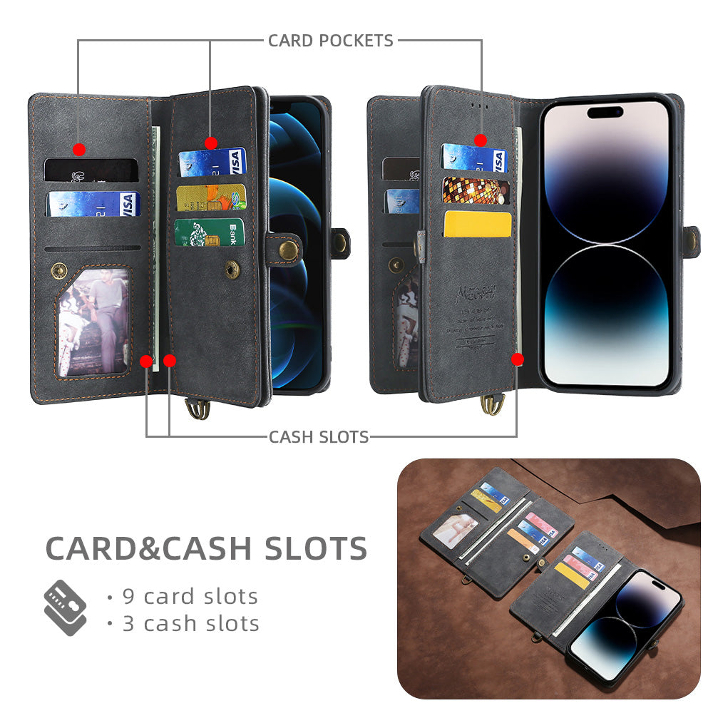 - Large capacity design, total 9 card slots and 3 cash pockets