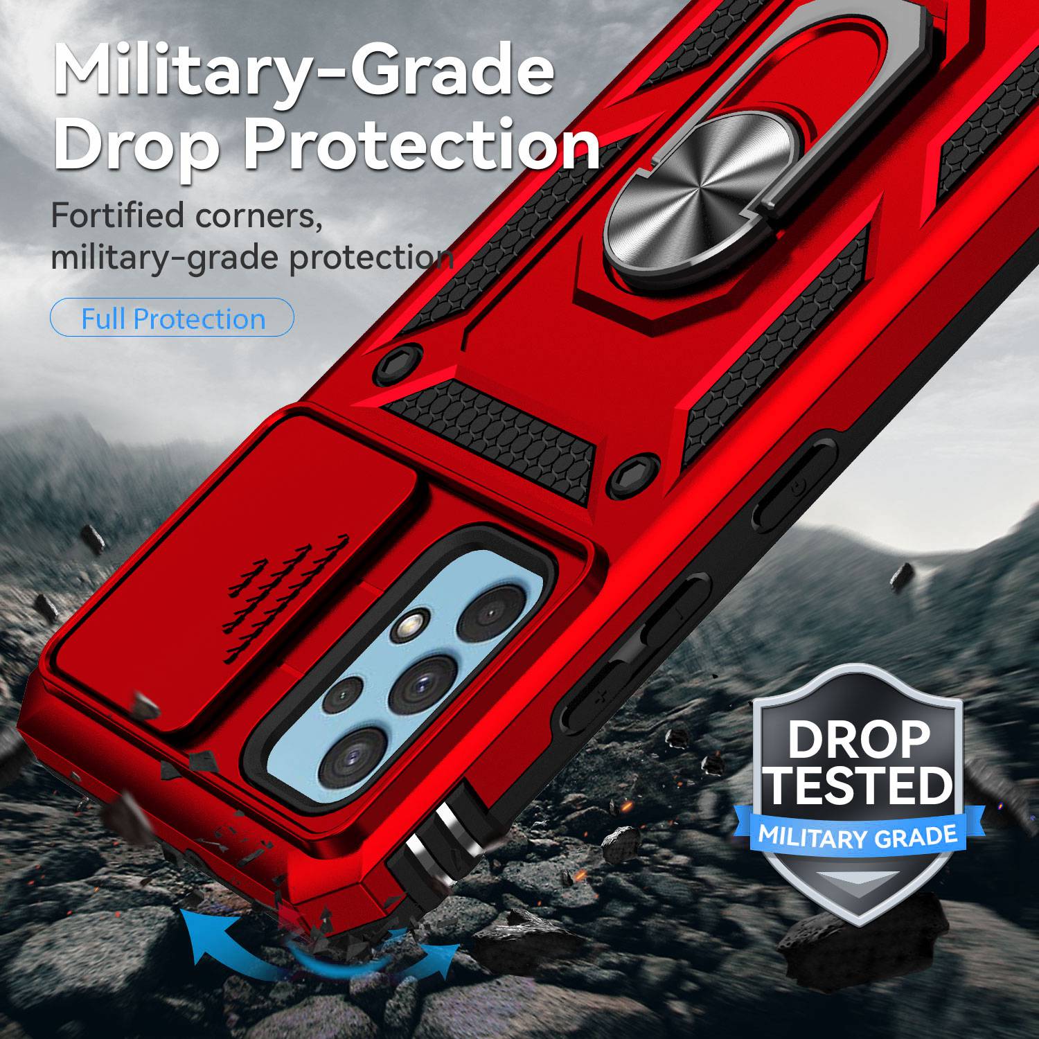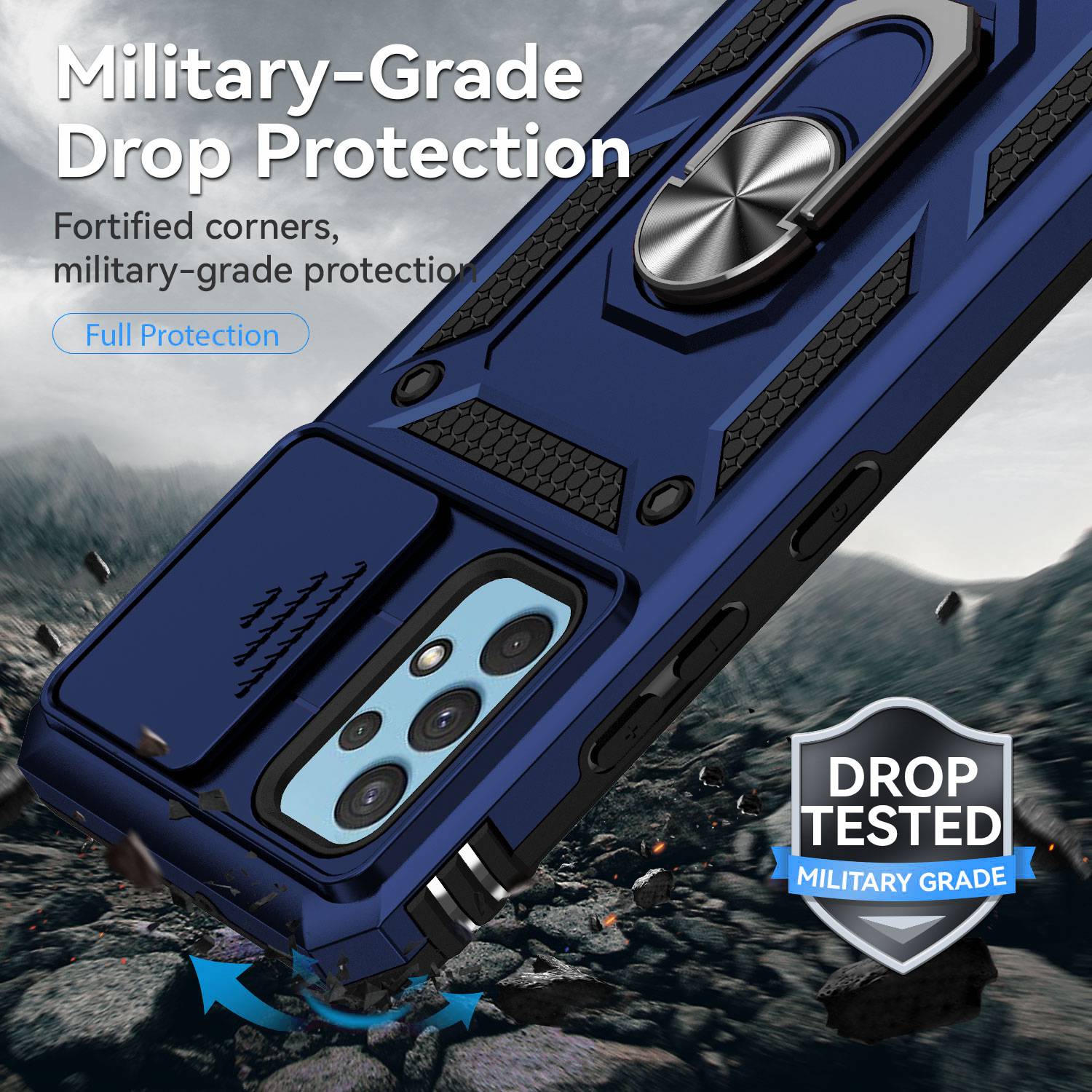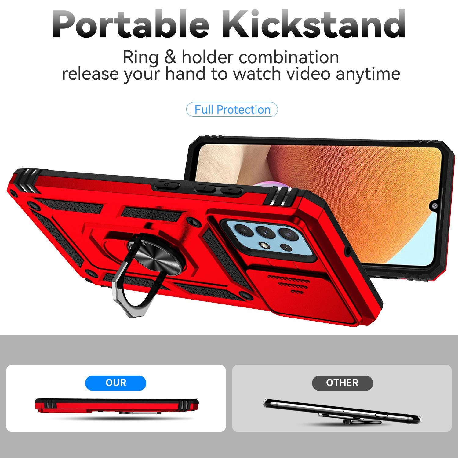 Metal Kickstand Phone Case for Samsung Galaxy A32 4G (EU Version), Shockproof PC + TPU Cover with Slide Camera Protection