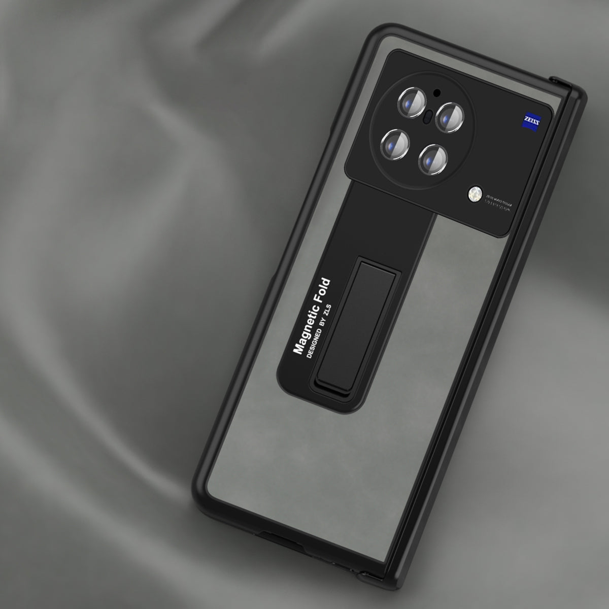 Nappa Texture Phone Case For vivo X Fold, Hinge Protection Kickstand Anti-scratch PU Leather + PC Phone Cover with Tempered Glass Film