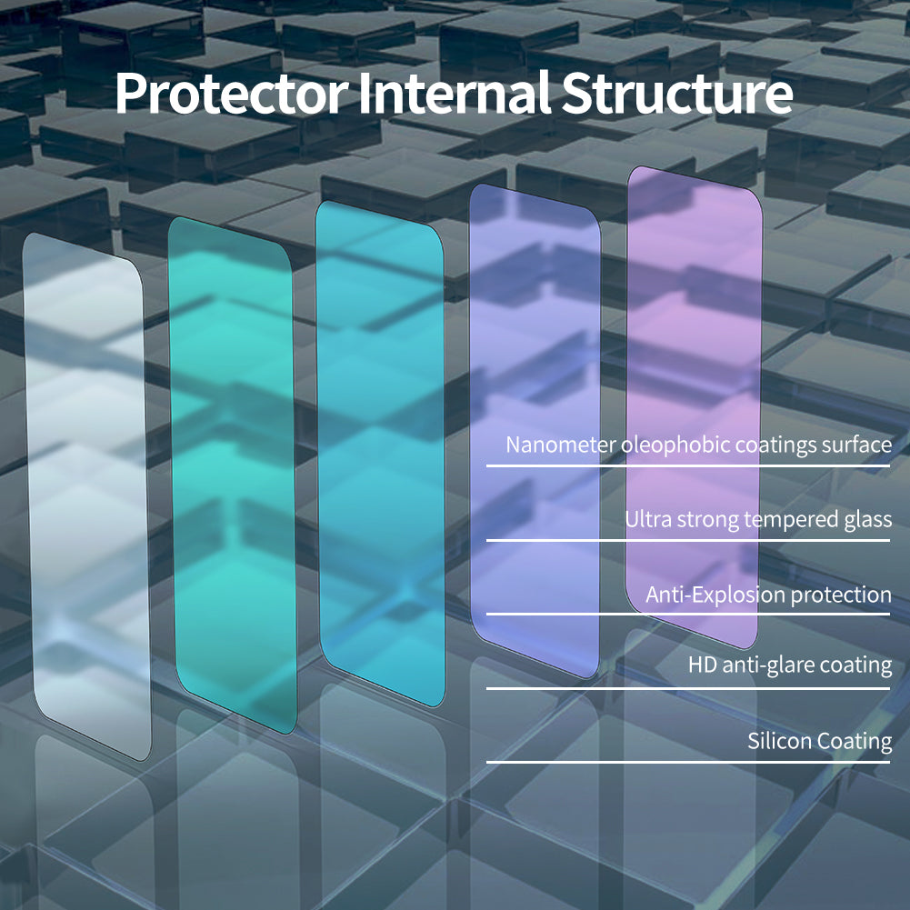 Selected AGC glass material features excellent defensive performance and super high transparency. Specially tempered glass, up to 9H hardness, extremely anti-scratch, resists burst, explosion, impacts and bumps. An oleophobic coating surface, more effective in resisting oil stains, and can effectively block and filter ultraviolet rays.