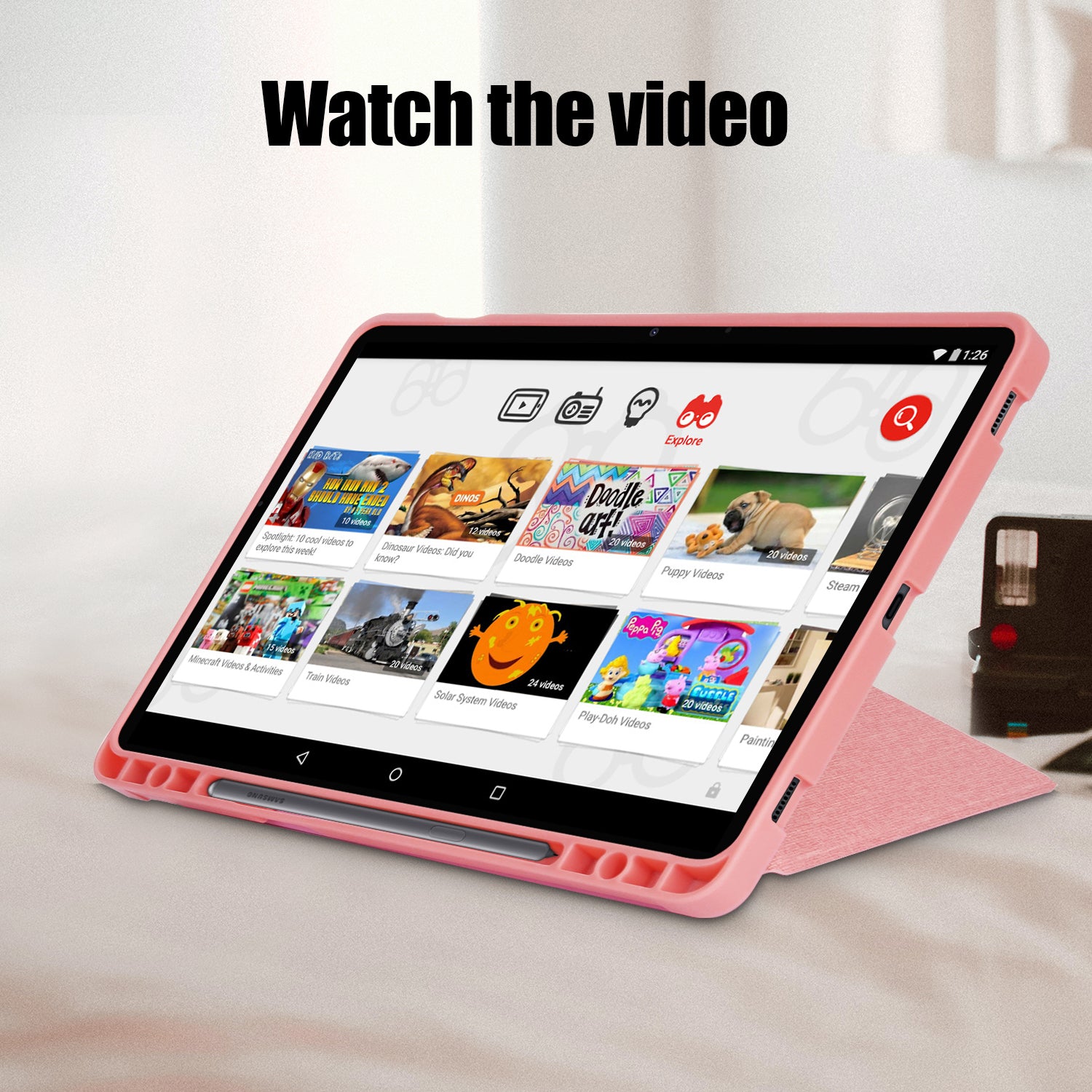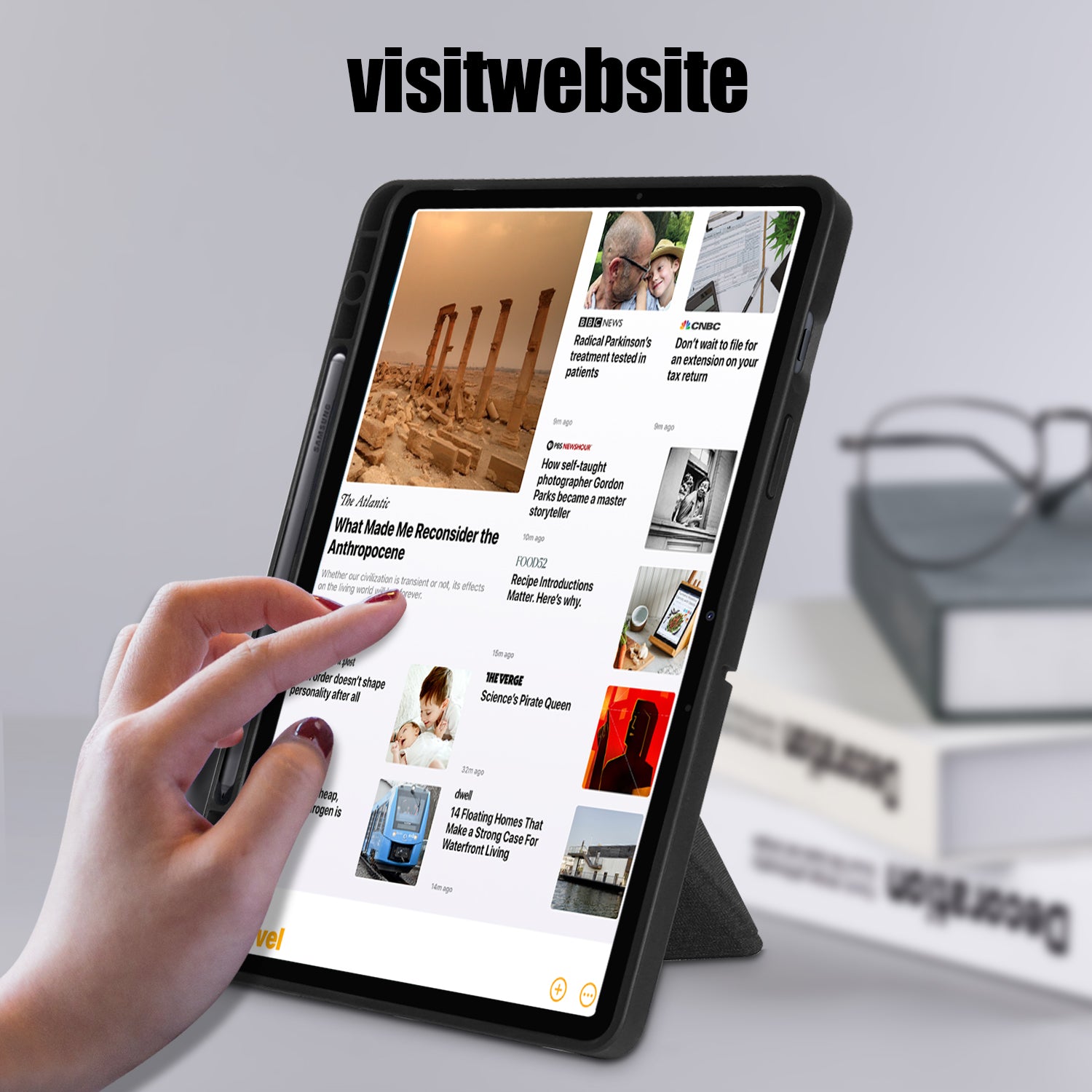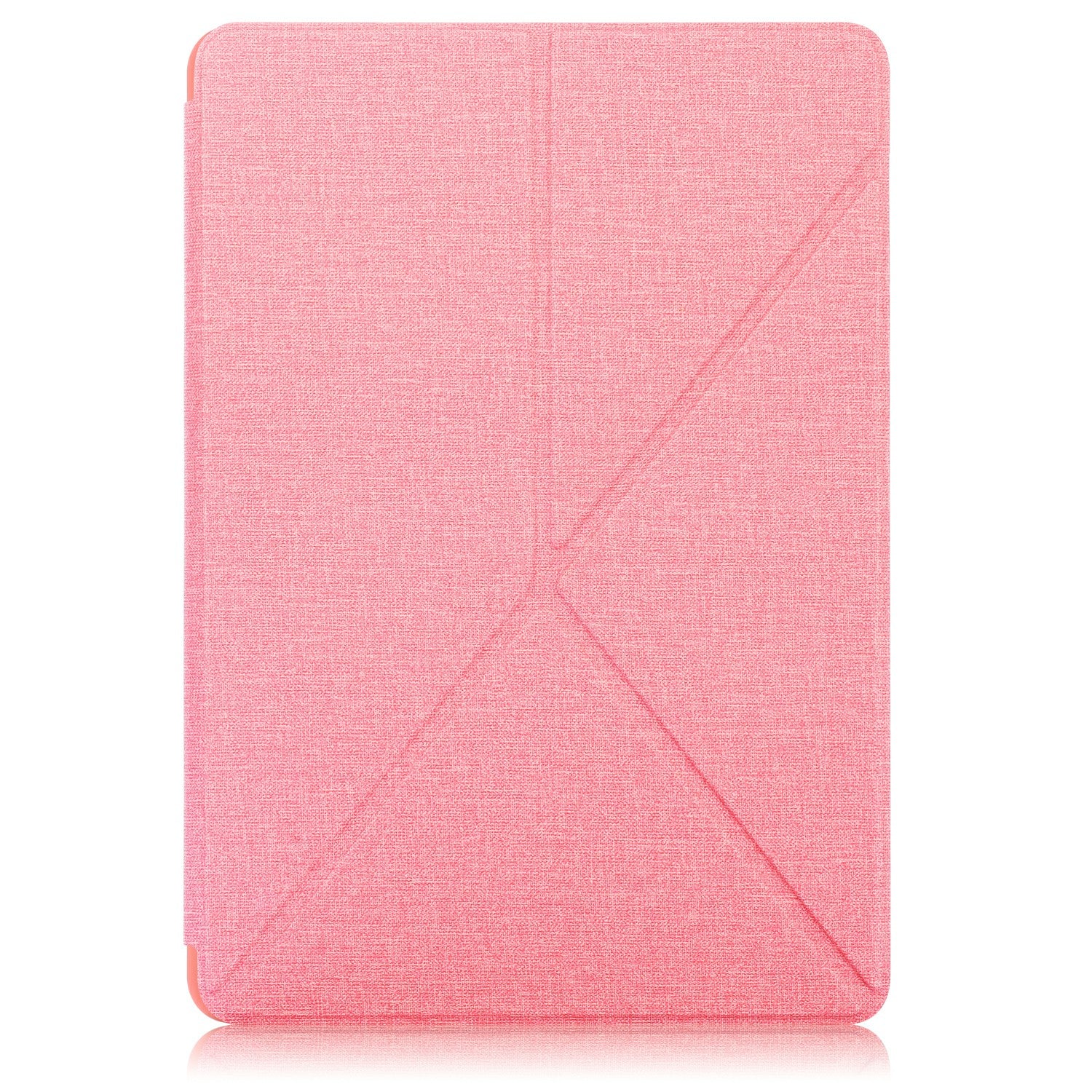 This case uses high quality PU leather and TPU materials, with simple and fashion appearance, protecting your tablet in compact style. Creative origami stand provides multiple viewing and typing angles for you. With intelligent wake up / sleep function, it turns the screen on or off automatically when opening or closing the flip.