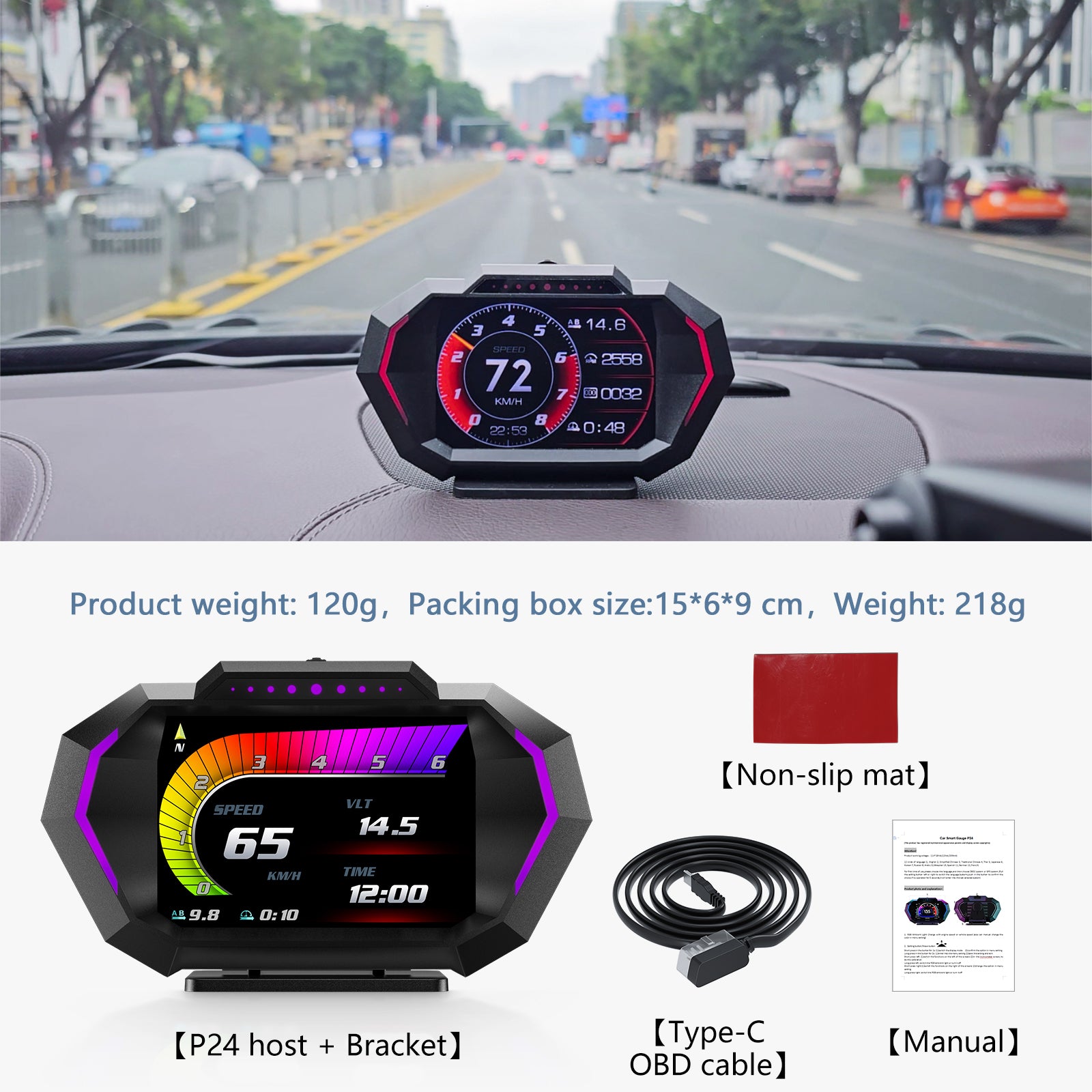 P24 Car Head Up Display OBD + GPS HUD On Board Computer Digital Speedometer with Ambient Light