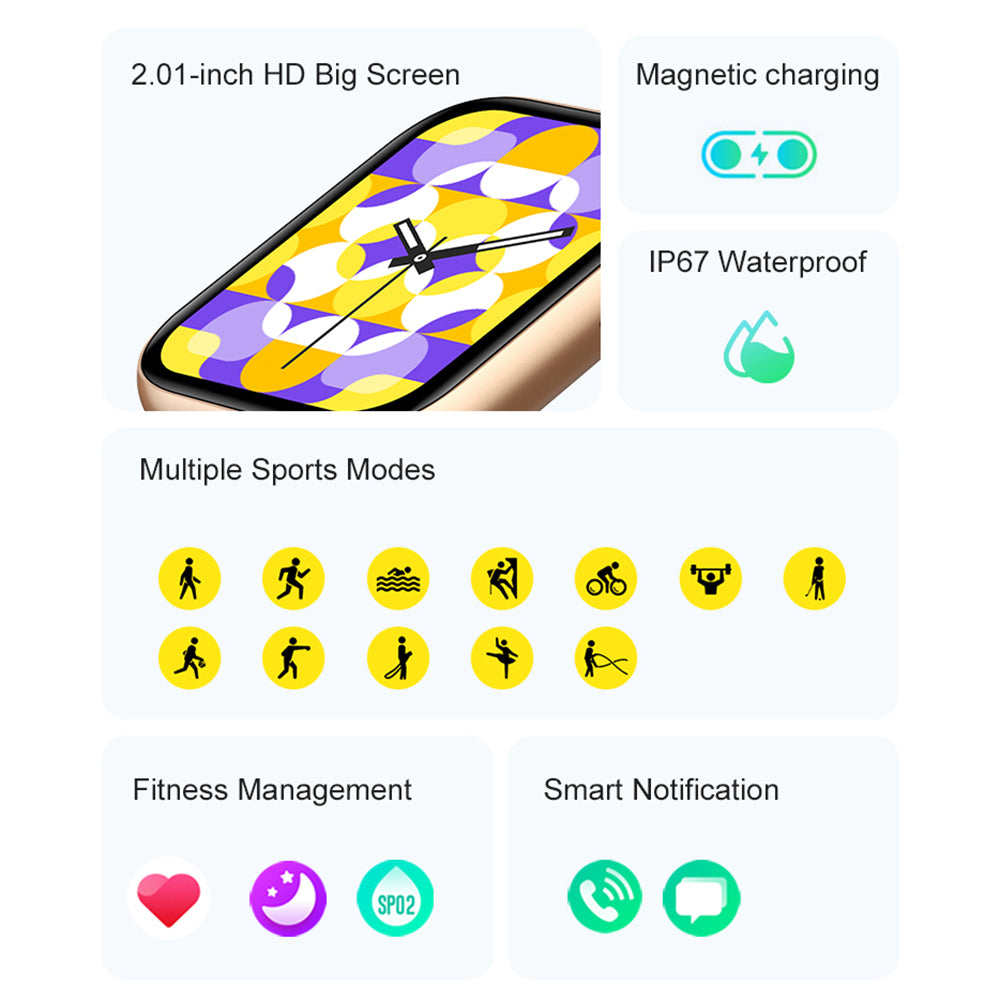 P59 2.01-inch HD Smart Watch Bluetooth Call Sports Bracelet with Heart Rate, Blood Pressure, Health Monitoring