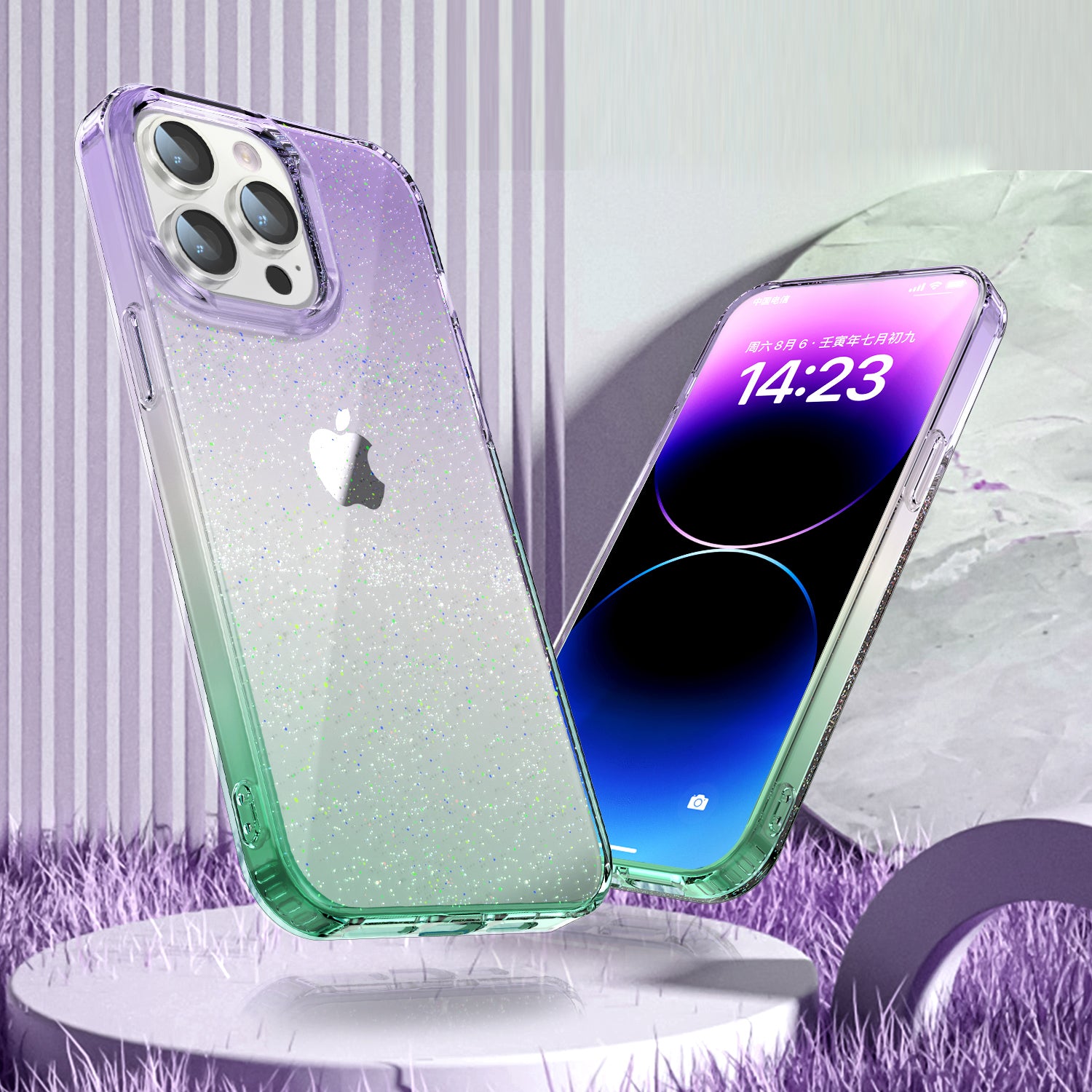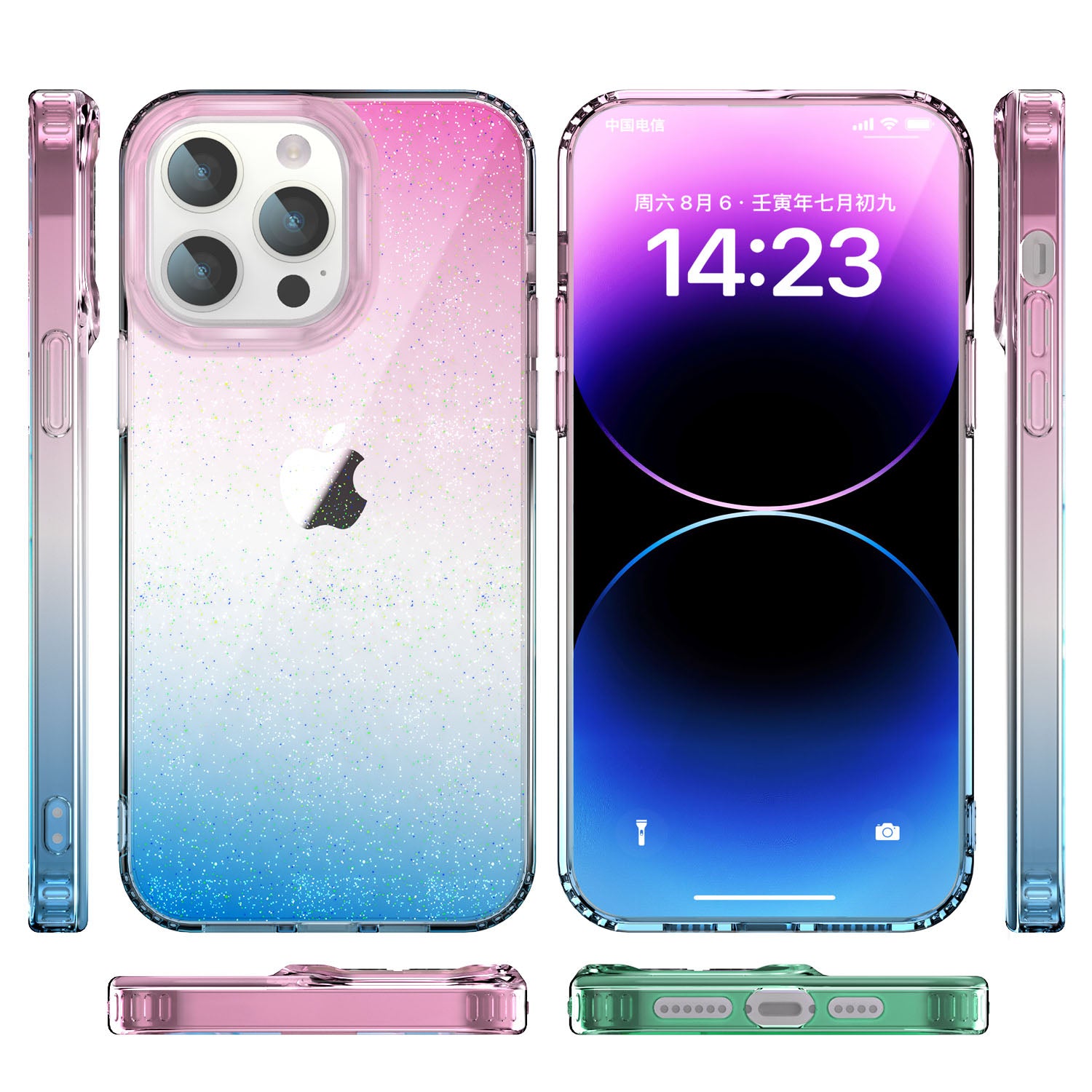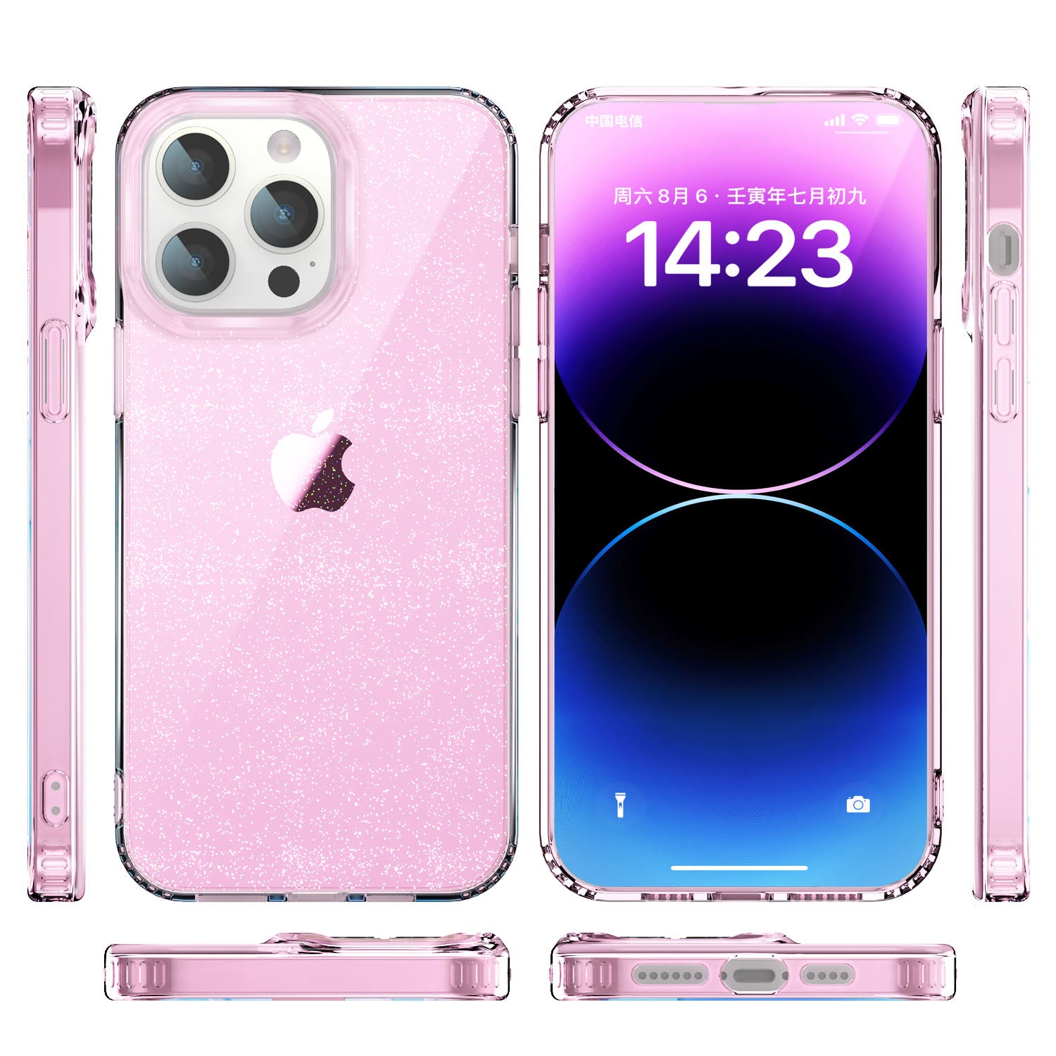 PC+TPU Back Case for iPhone 13 Pro 6.1 inch Clear Glitter Powder IMD Mobile Phone Cover