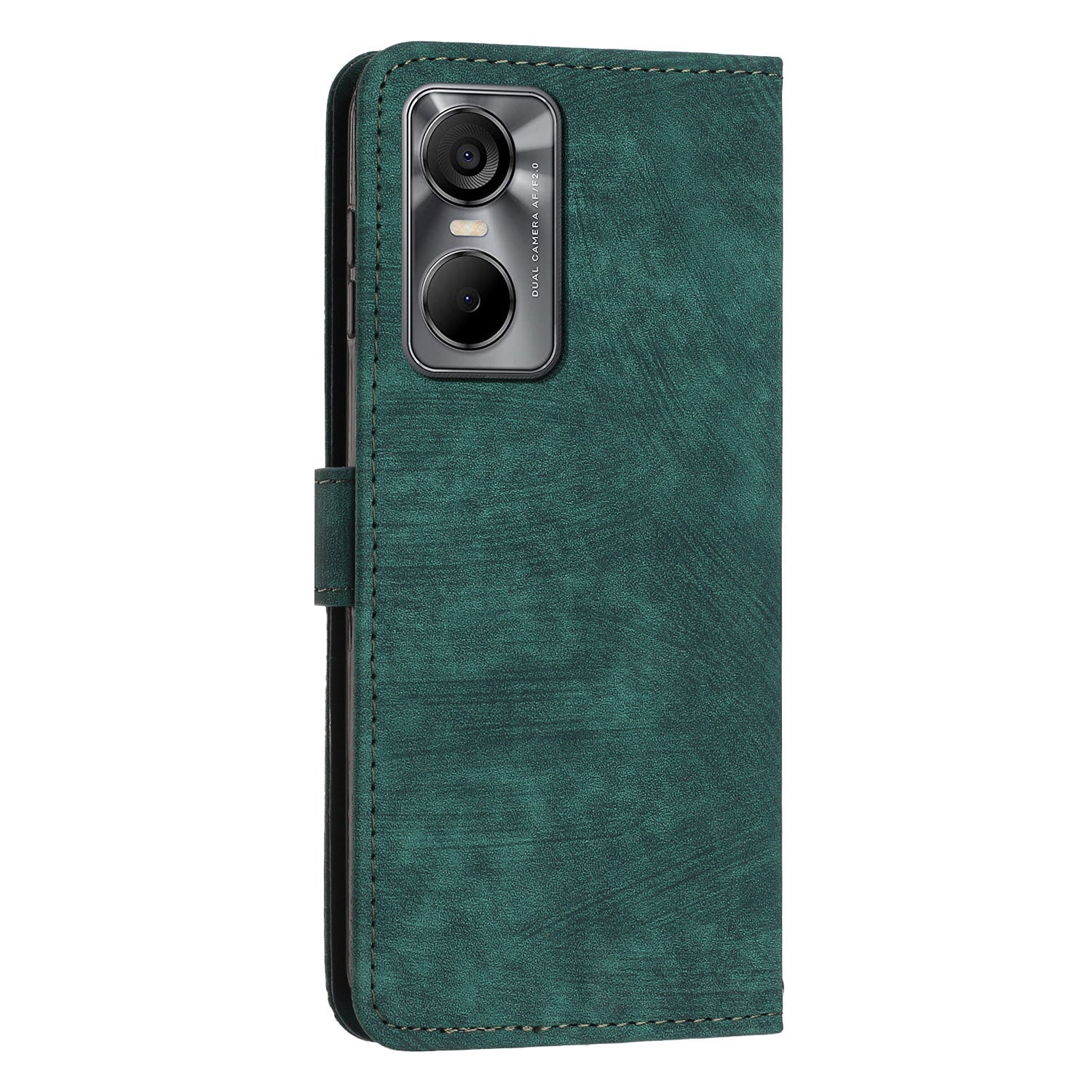 Phone Case for Tecno Pop 6 Pro 4G PU Leather Skin-touch Lines Imprinted Wallet Stand Cover