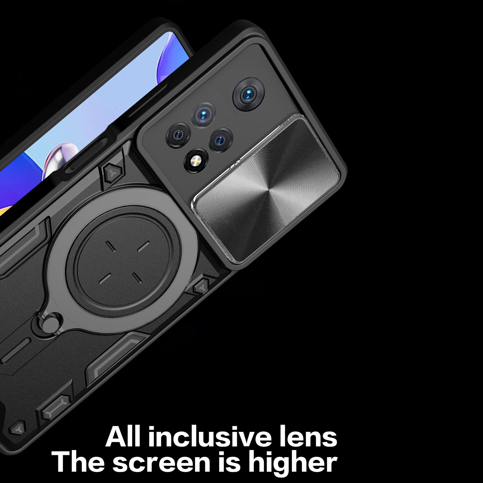 Phone Case for Xiaomi Redmi Note 11 Pro 4G (MediaTek) / Note 11 Pro 5G (Qualcomm) / Note 11E Pro 5G / Note 11 Pro+ 5G (India) , Slide Lens Protection TPU+PC Kickstand Cover